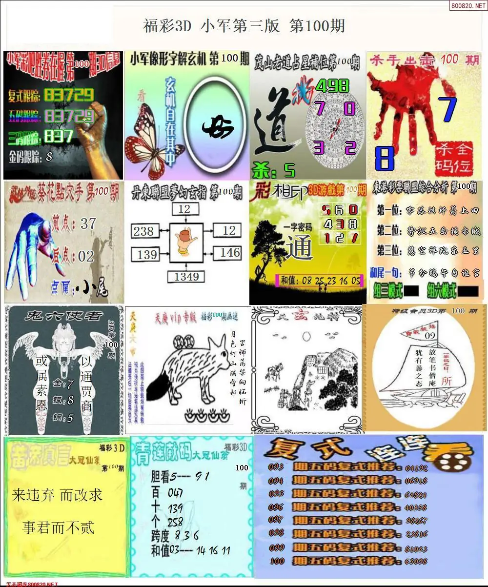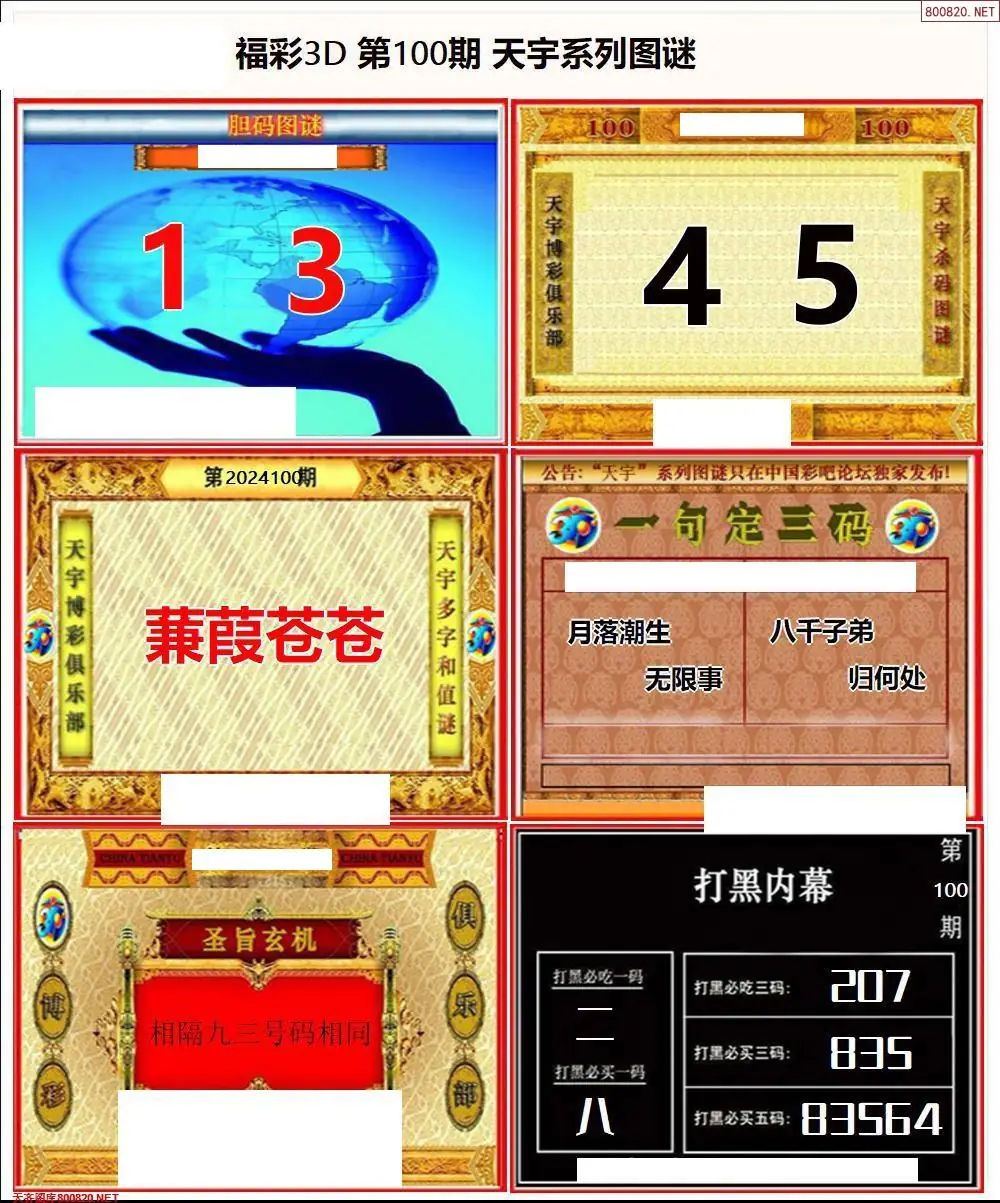 福彩3D100期天牛彩吧套图整合总汇