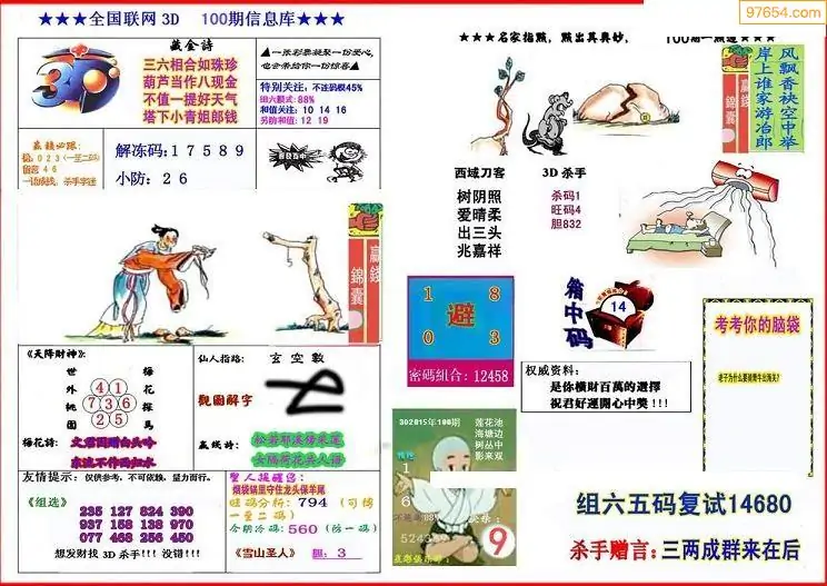 100期鑫马分析+杀手报3d图谜