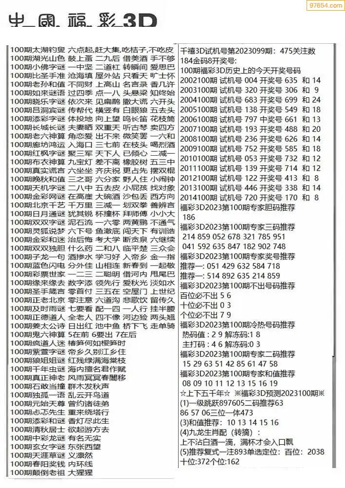 福彩3D100期天牛彩吧套图整合总汇
