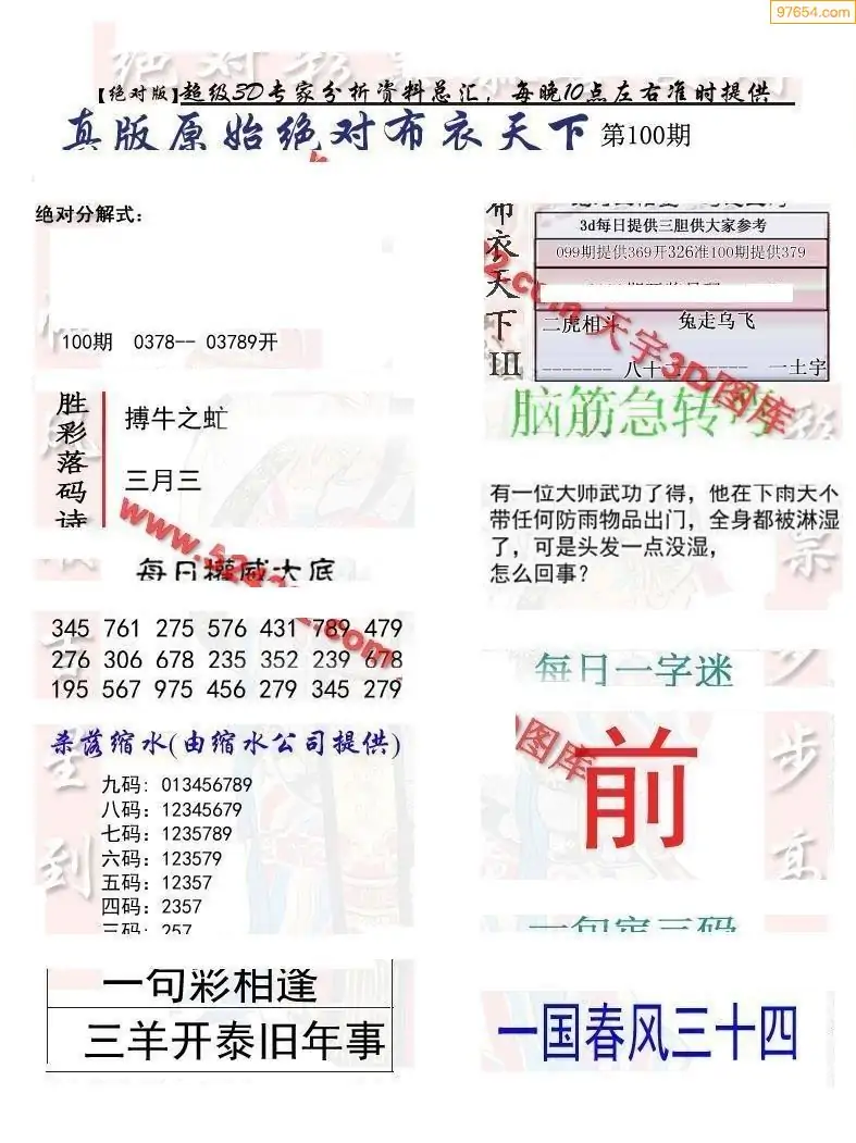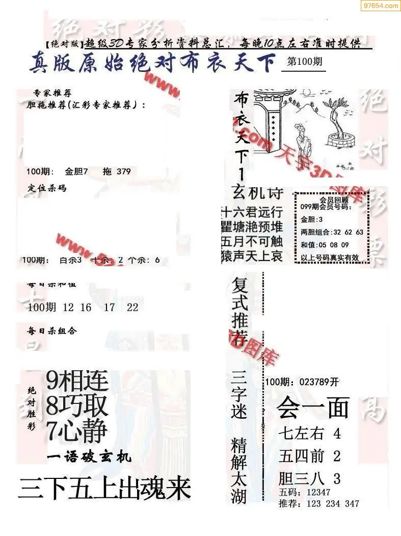 100期3D彩吧图库精华布衣图123456分享