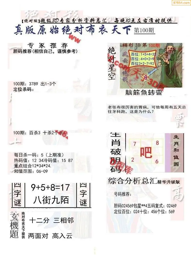 福彩100期3d真精华布衣+布衣早报(转载)