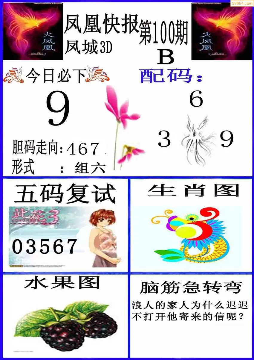 100期3D牛彩预测报+彩吧字谜报
