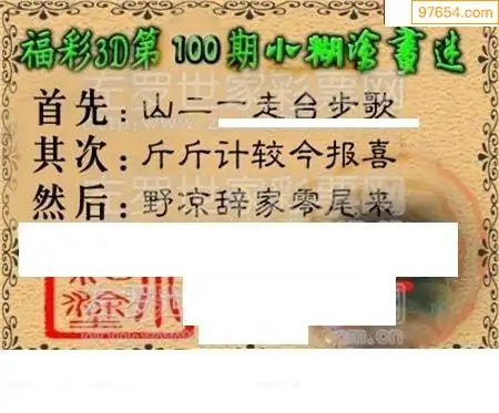 福彩26100期华夏作者3d图迷