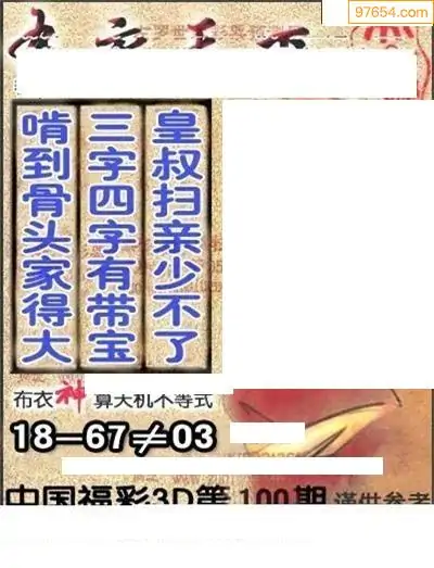 26年100期财神说彩3D综合图(原创)_3d财神到财神送胆