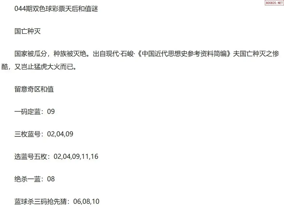 彩票天后双色球26年044期今日和值谜