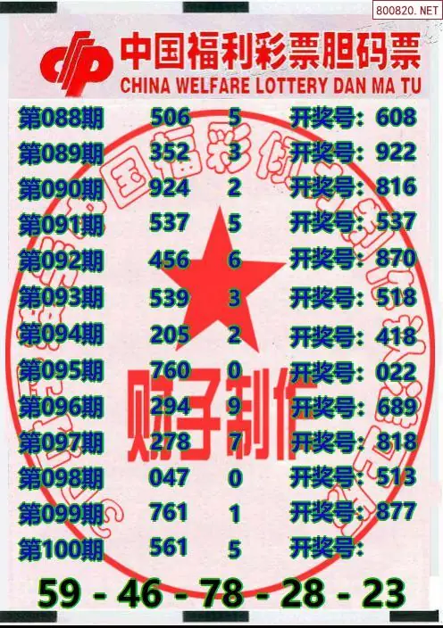 牛彩网100期福彩胆码图汇总 胆:46