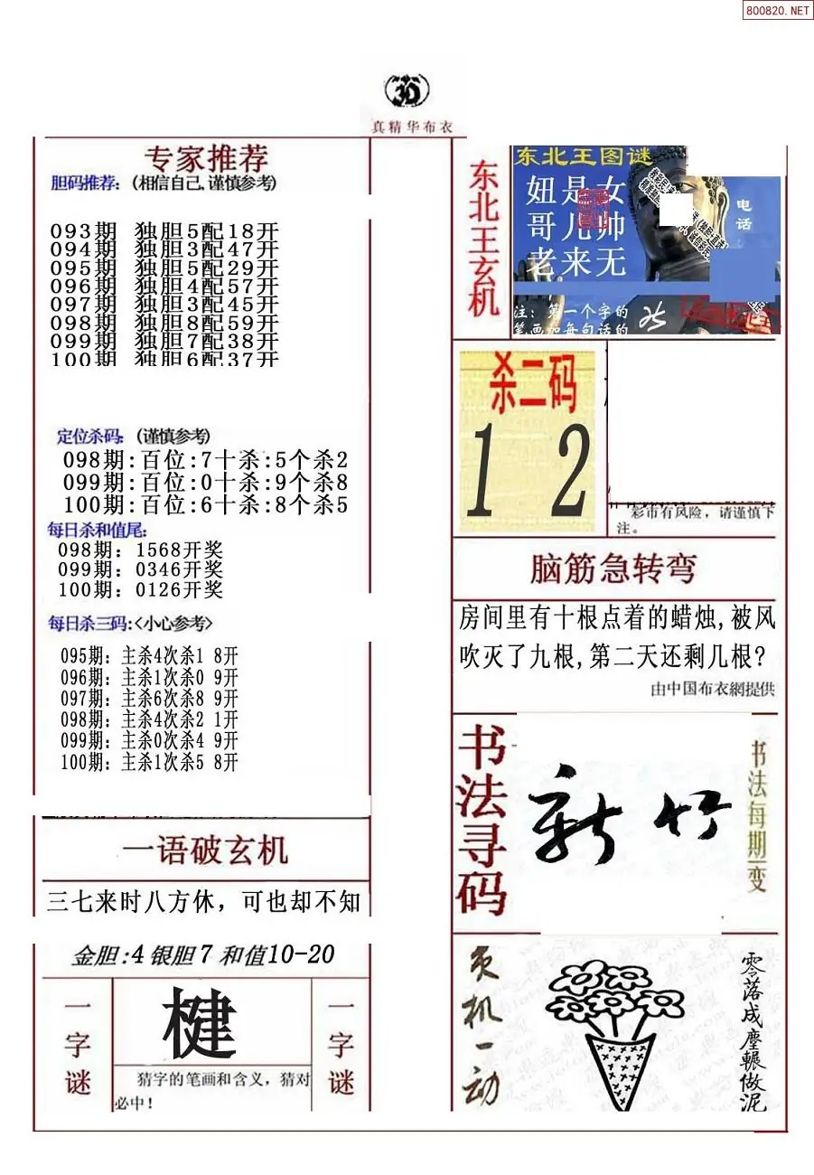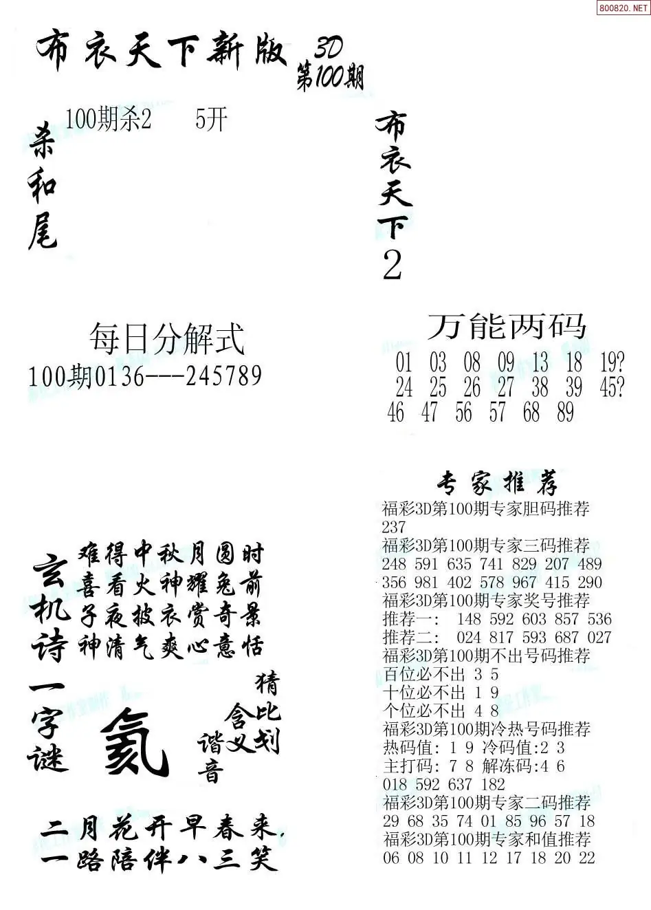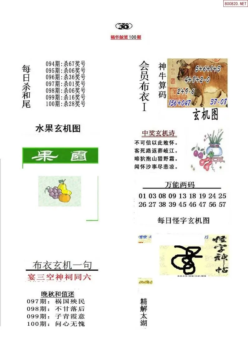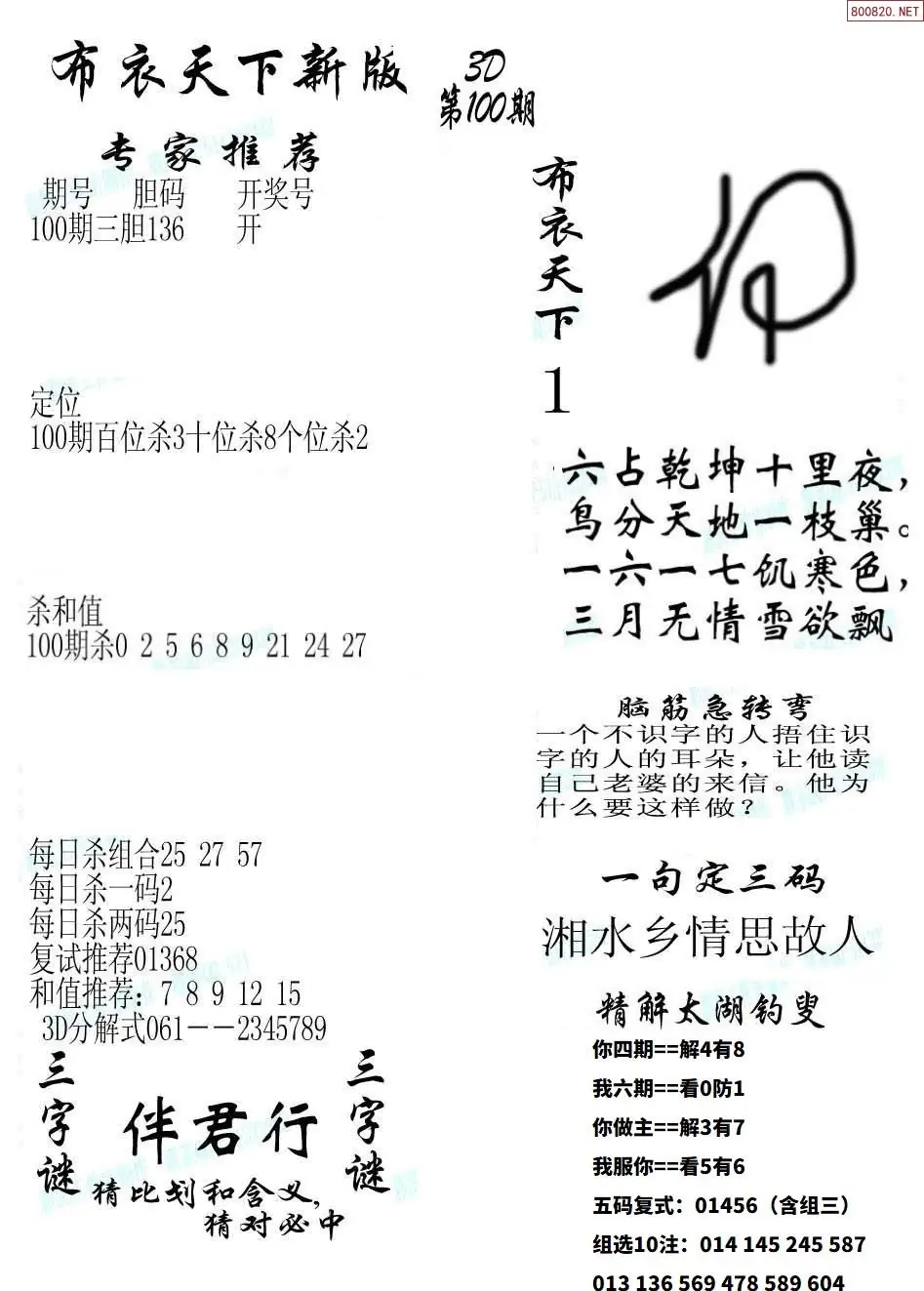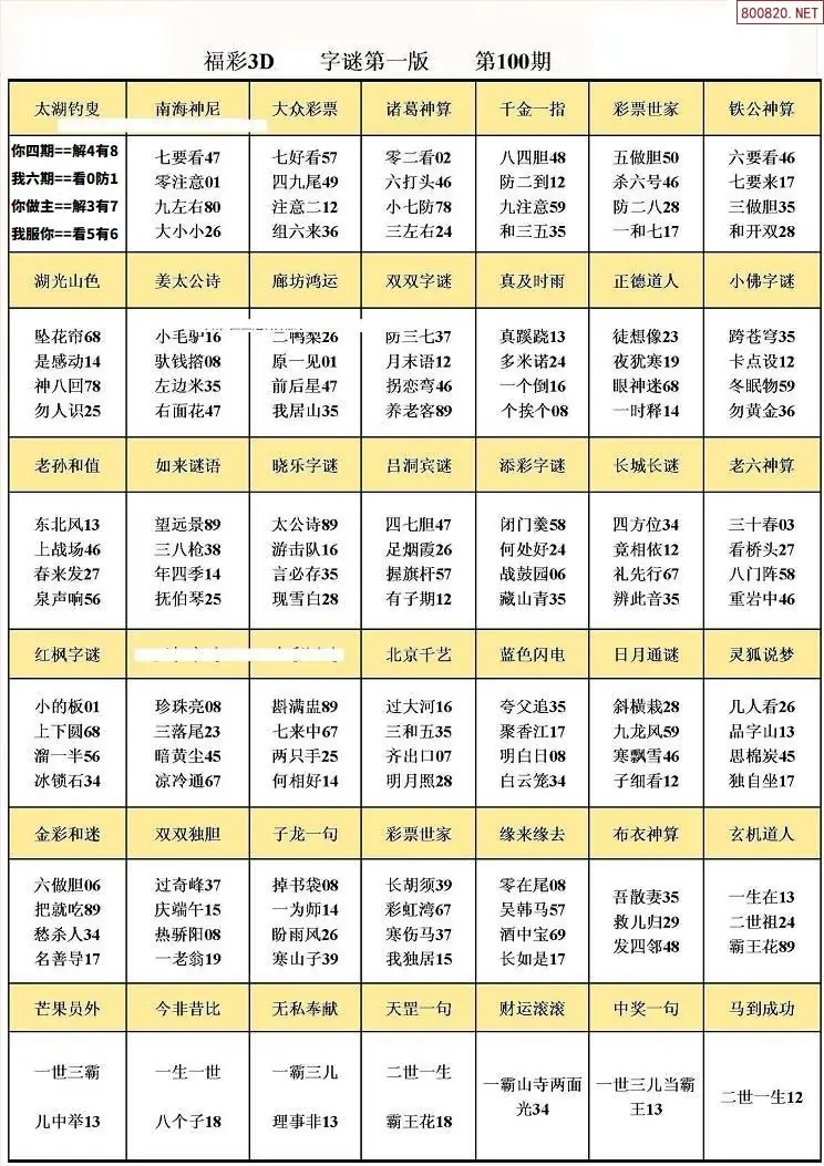 (3)2026100期3D预测总汇全图_福彩3d图谜字谜总汇