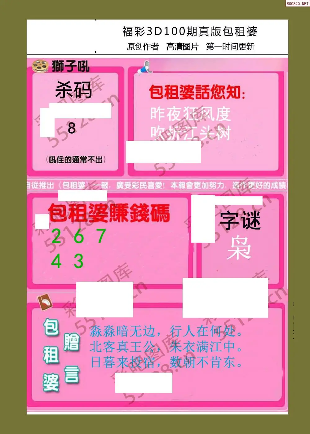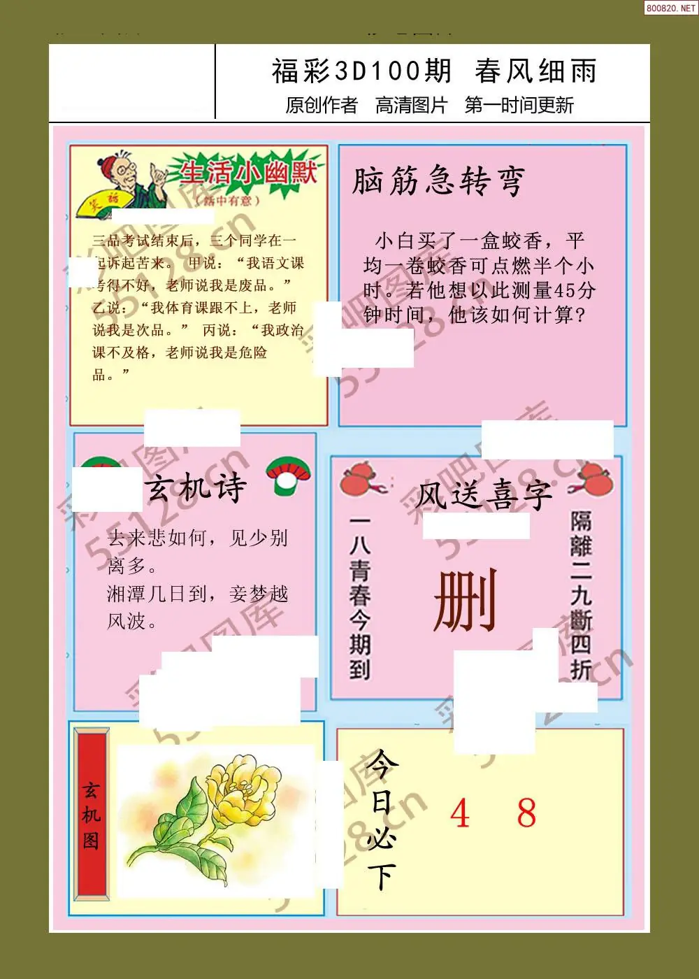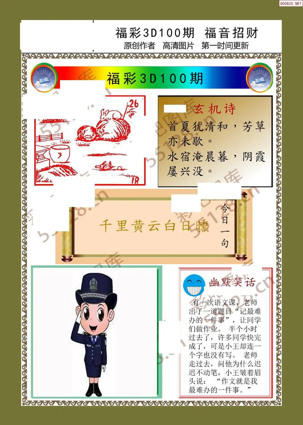 (2)26年100期本期3d图迷汇总_福彩3D图谜总汇图