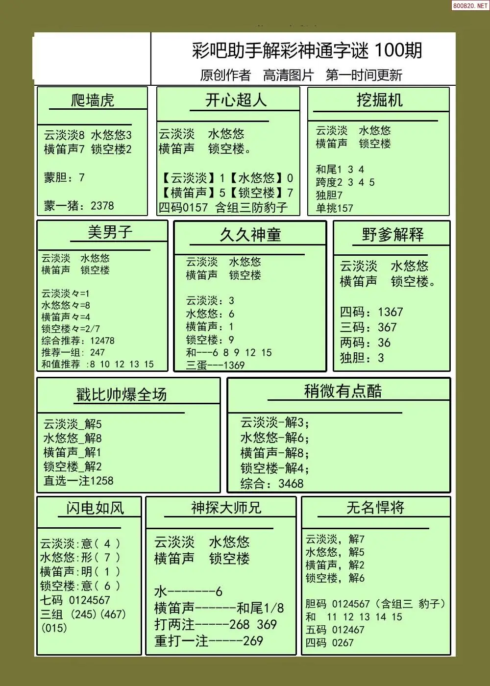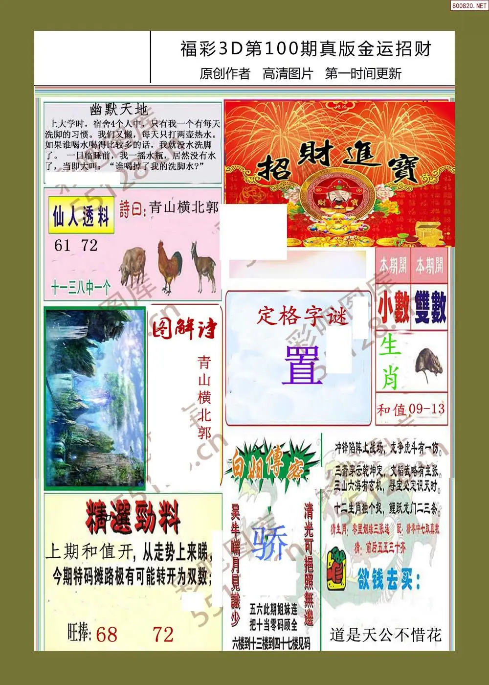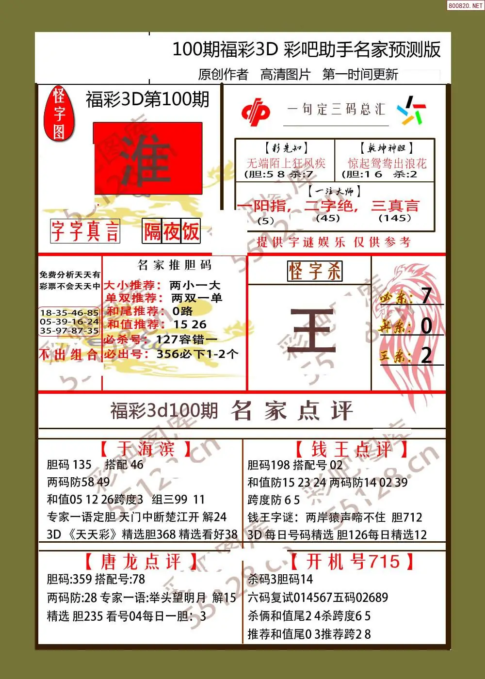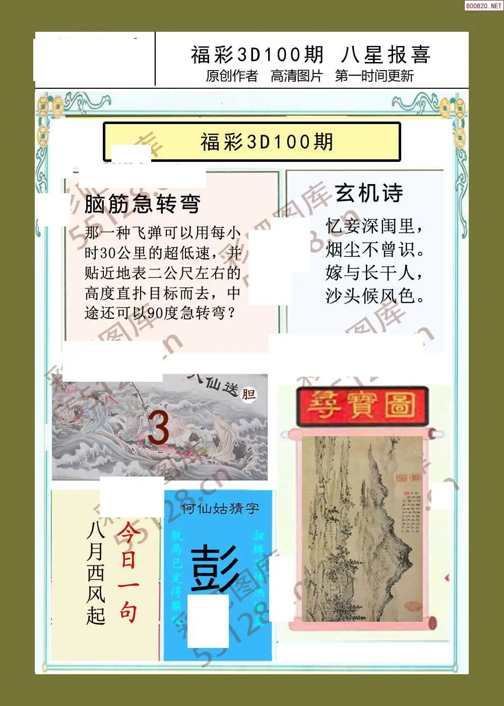 (3)2026100期3D预测总汇全图_福彩3d图谜字谜总汇