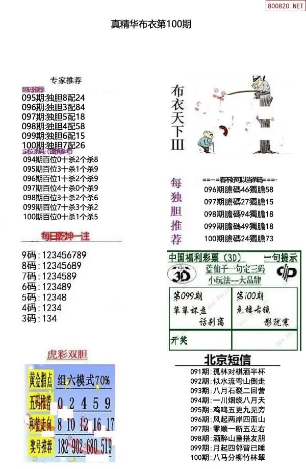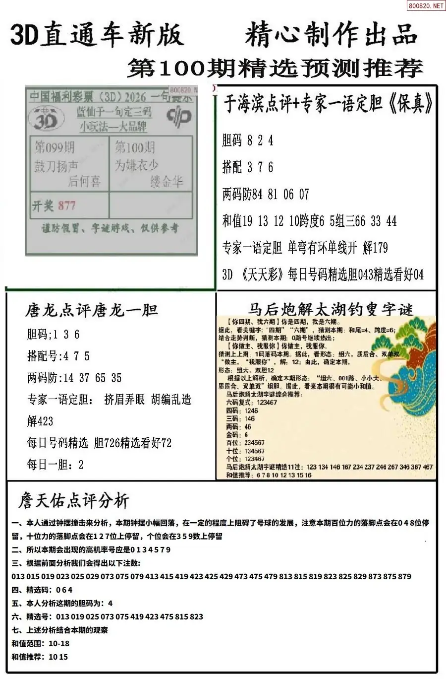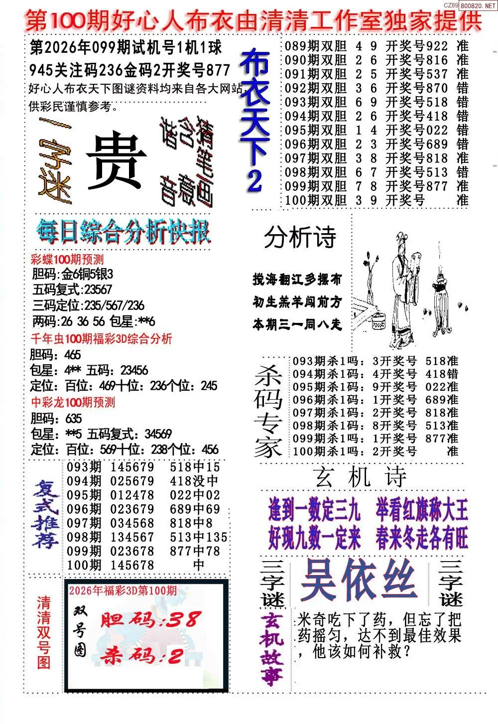 (2)26年100期本期3d图迷汇总_福彩3D图谜总汇图