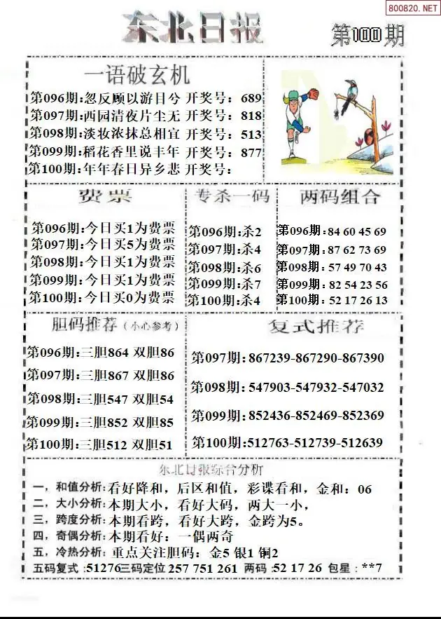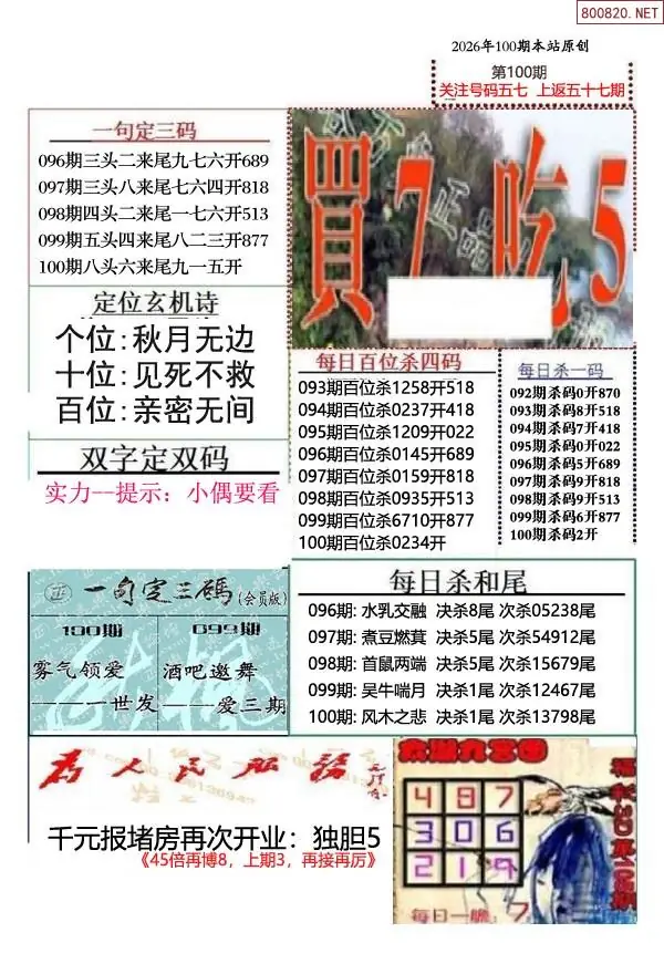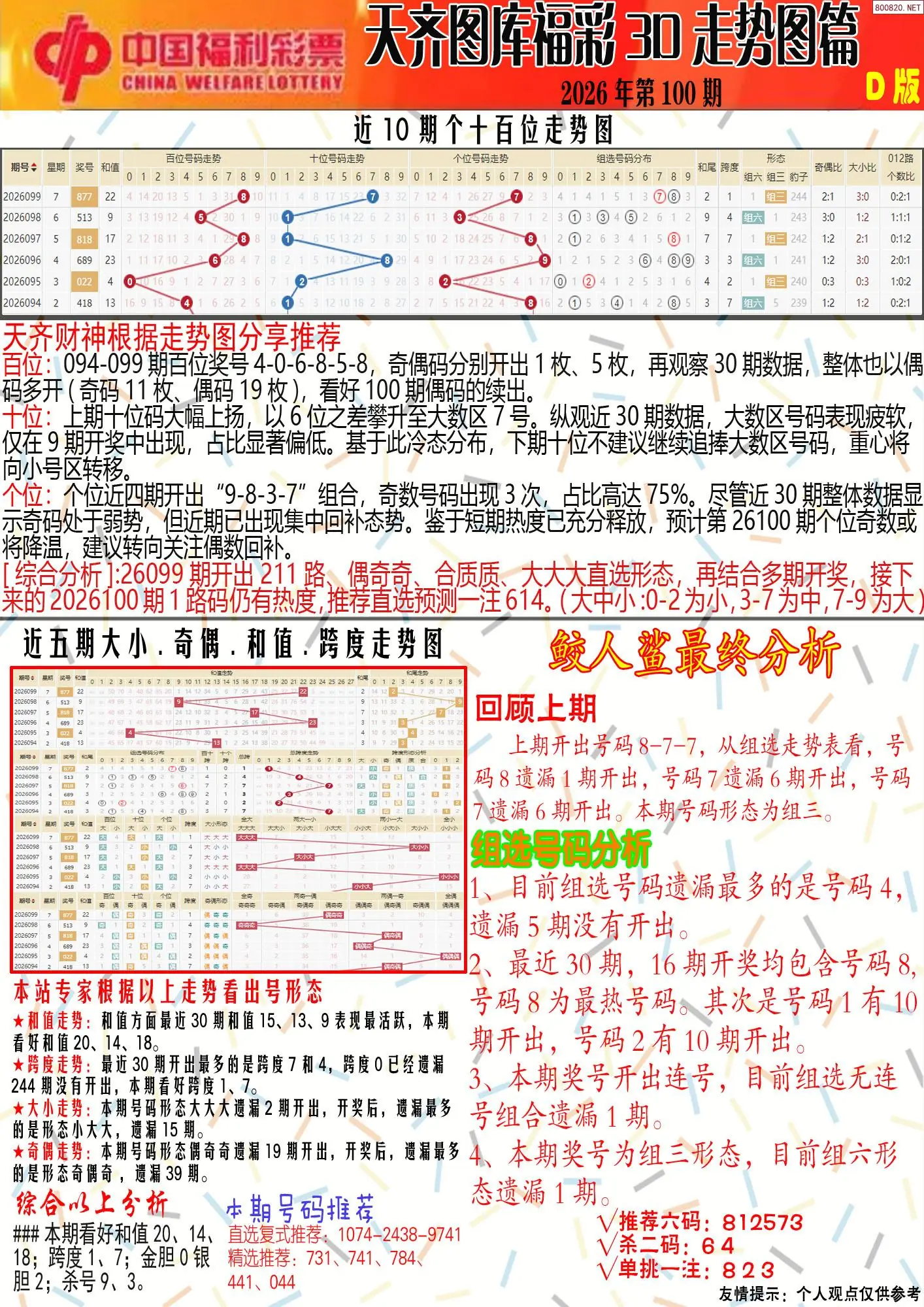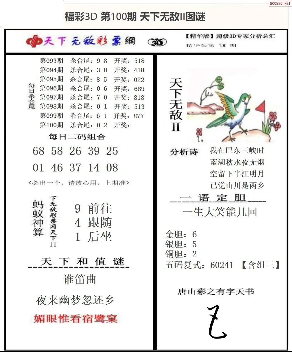(2)26年100期本期3d图迷汇总_福彩3D图谜总汇图