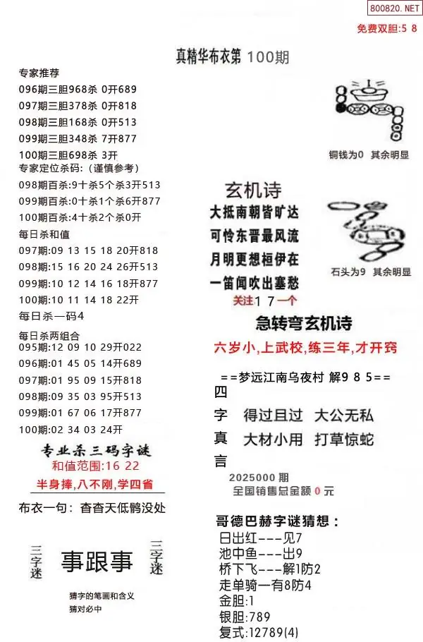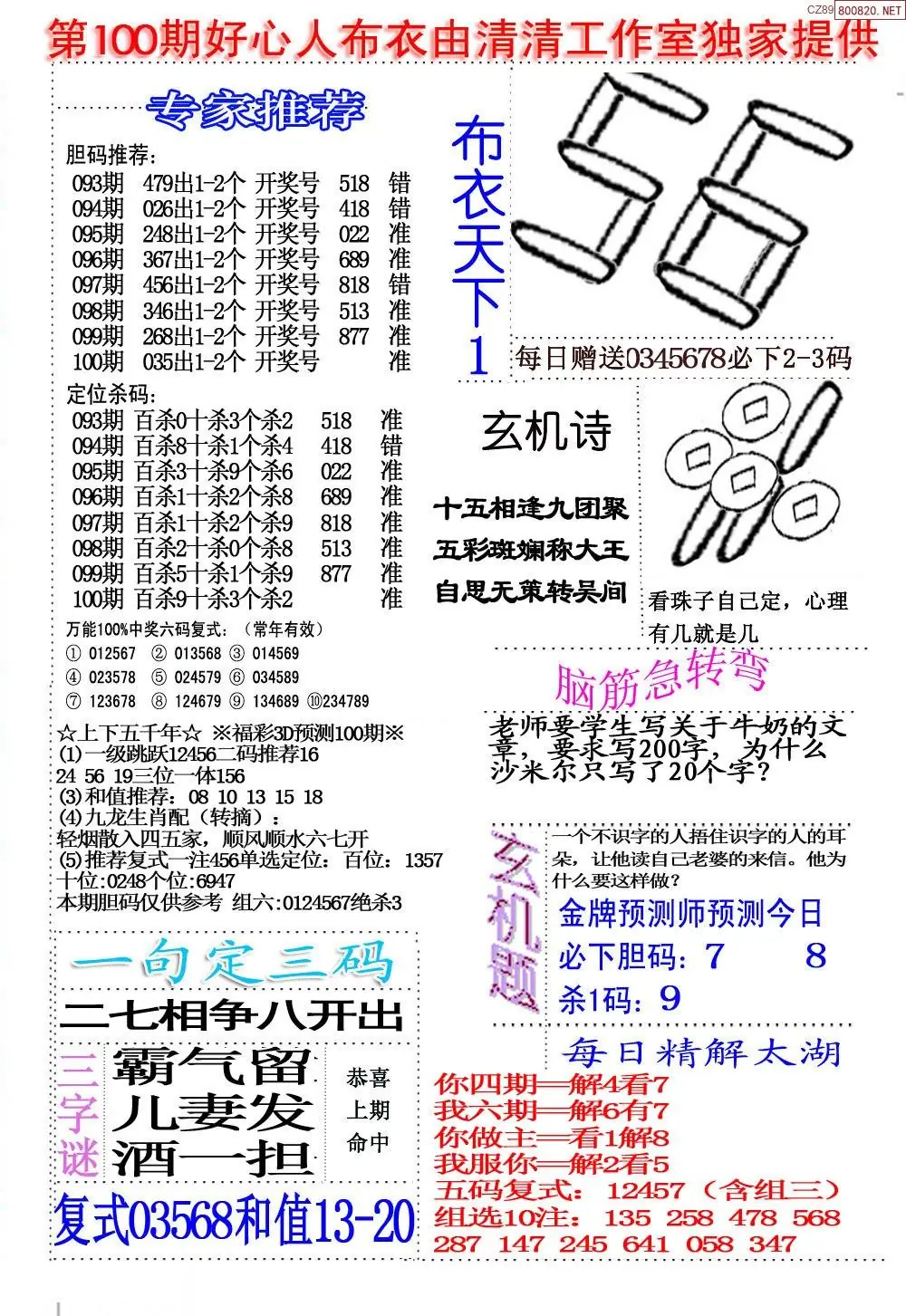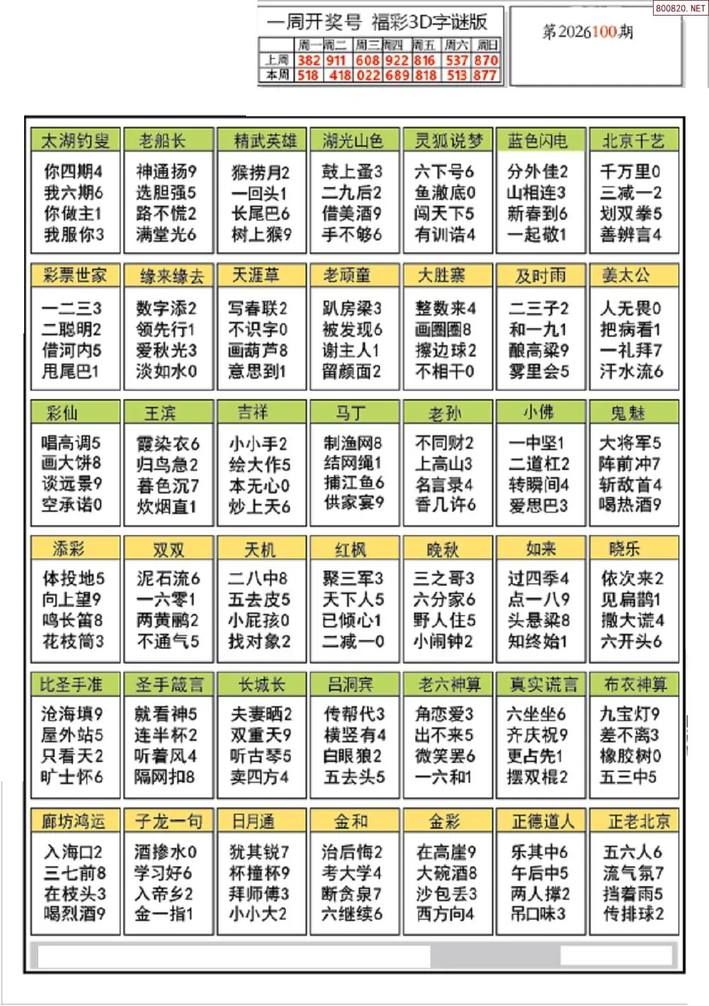 (3)2026100期3D预测总汇全图_福彩3d图谜字谜总汇
