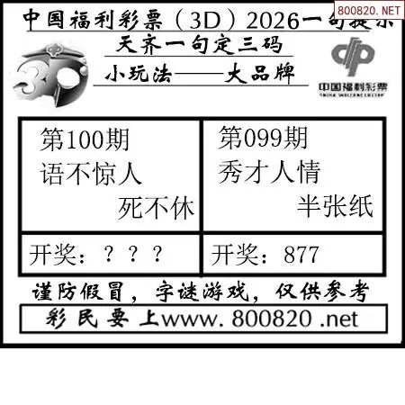 (8)26年100期今日3d各类彩报汇总