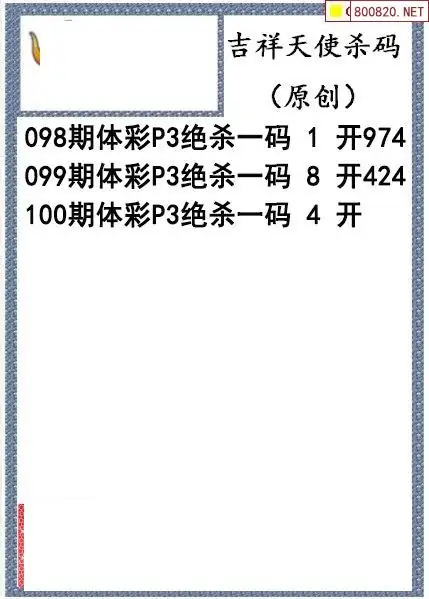 26年100期吉祥天使今日杀码图谜