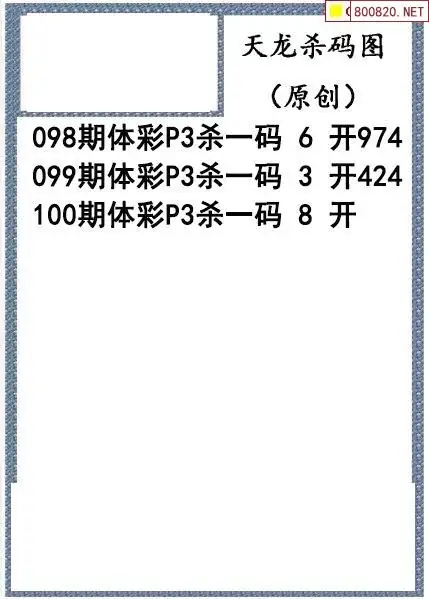 26年100期天龙体彩P3杀码图谜