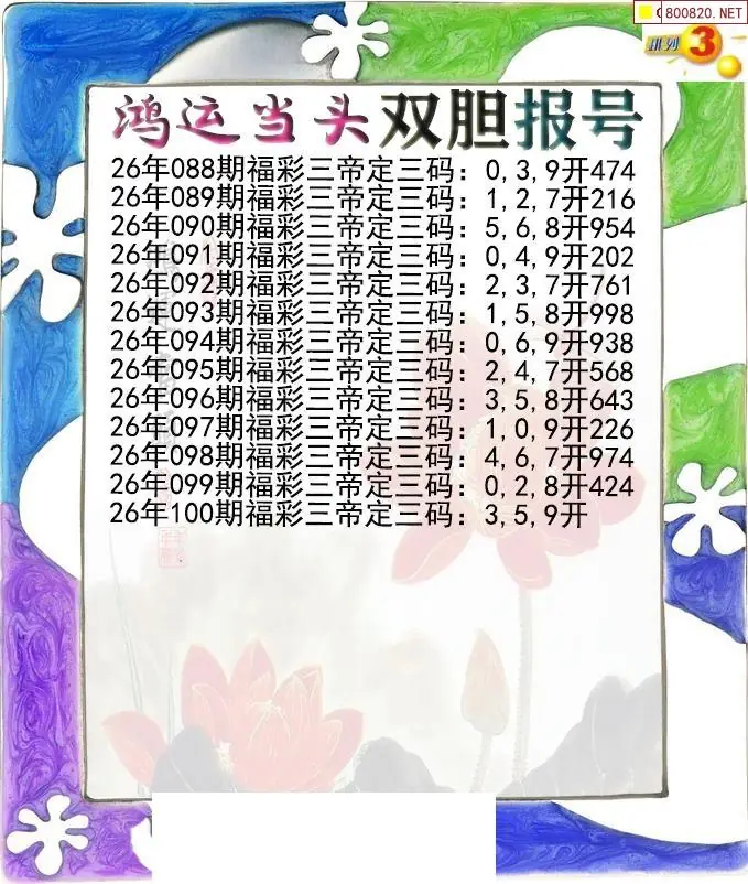 26100期鸿运当头双胆p3报号图