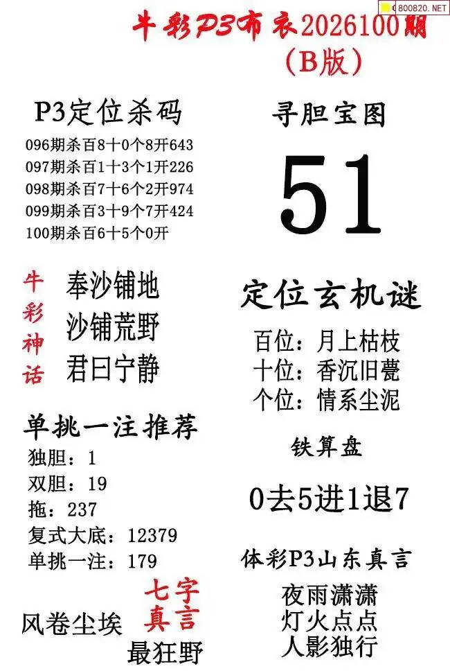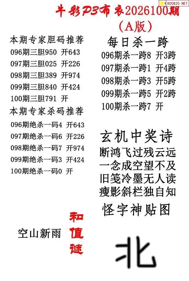 2026年100期北盟天机图+p3仙机图谜 _排三图谜专区