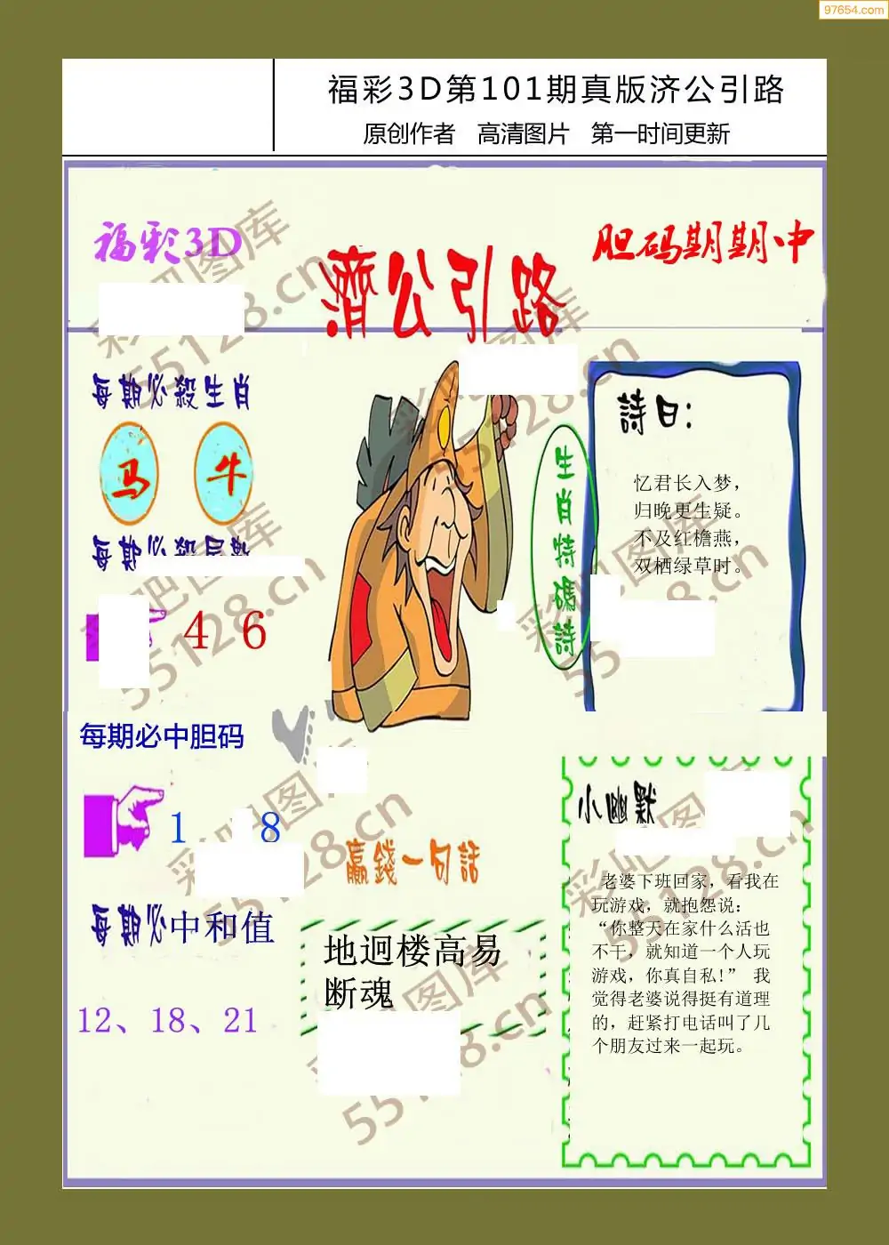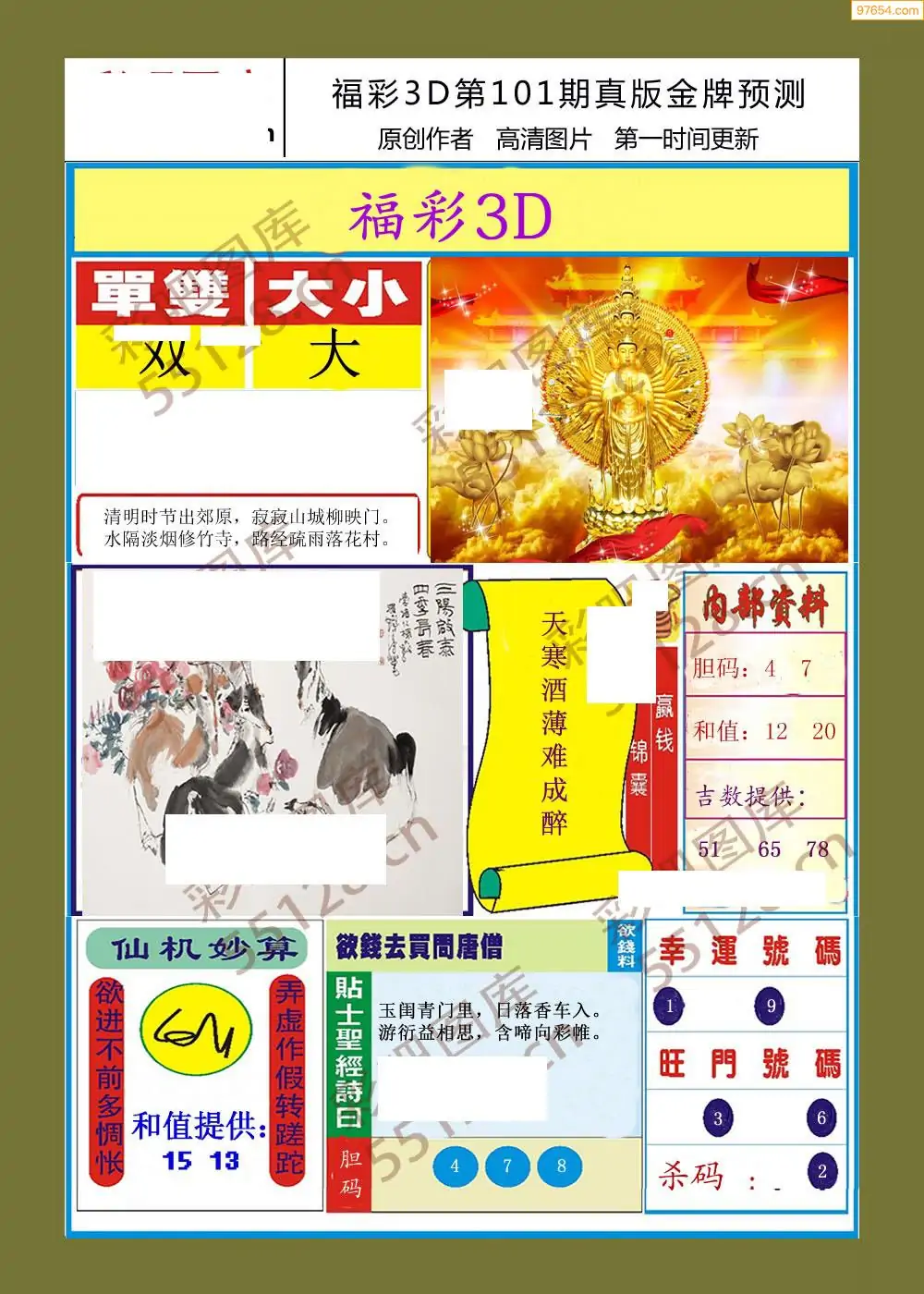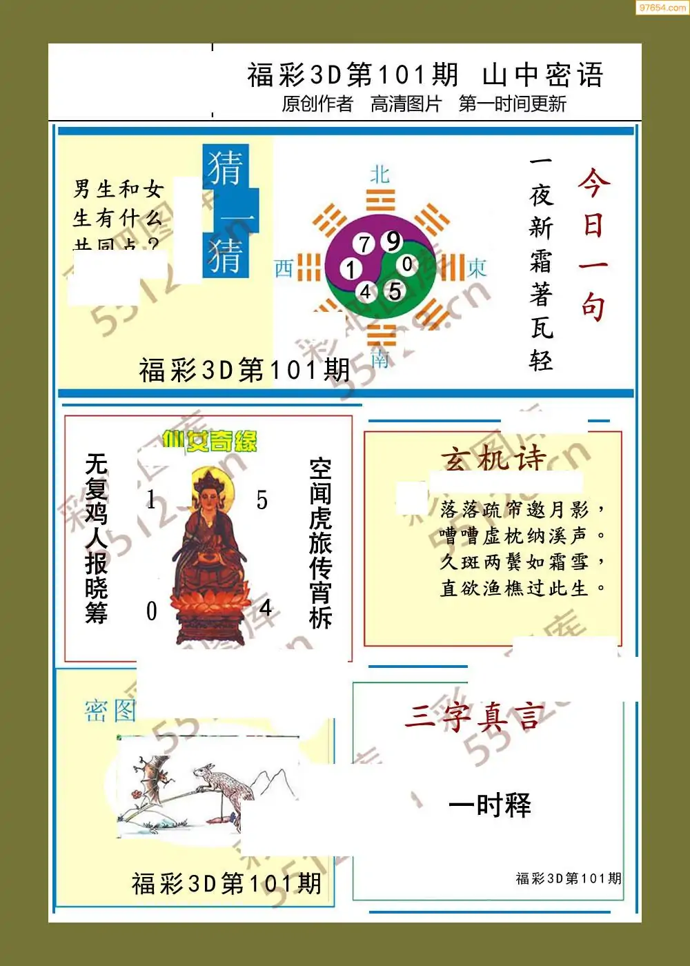 福彩3D101期天牛彩吧套图整合总汇