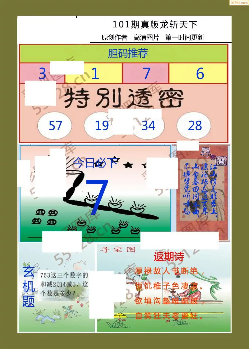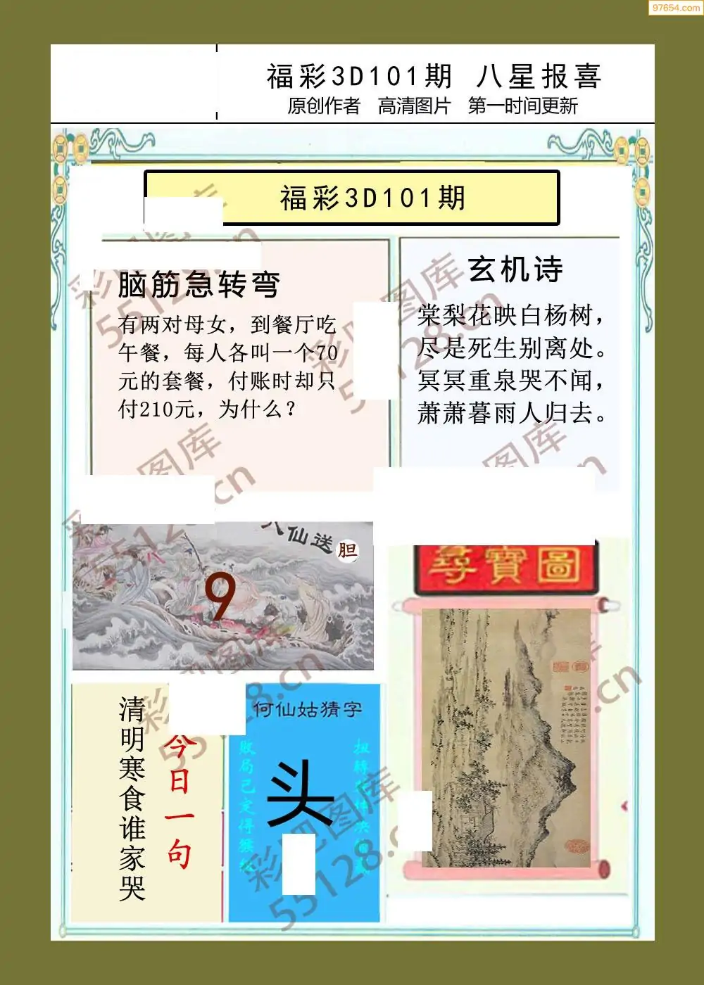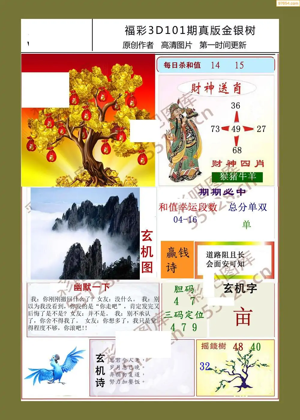福彩3D101期天牛彩吧套图整合总汇