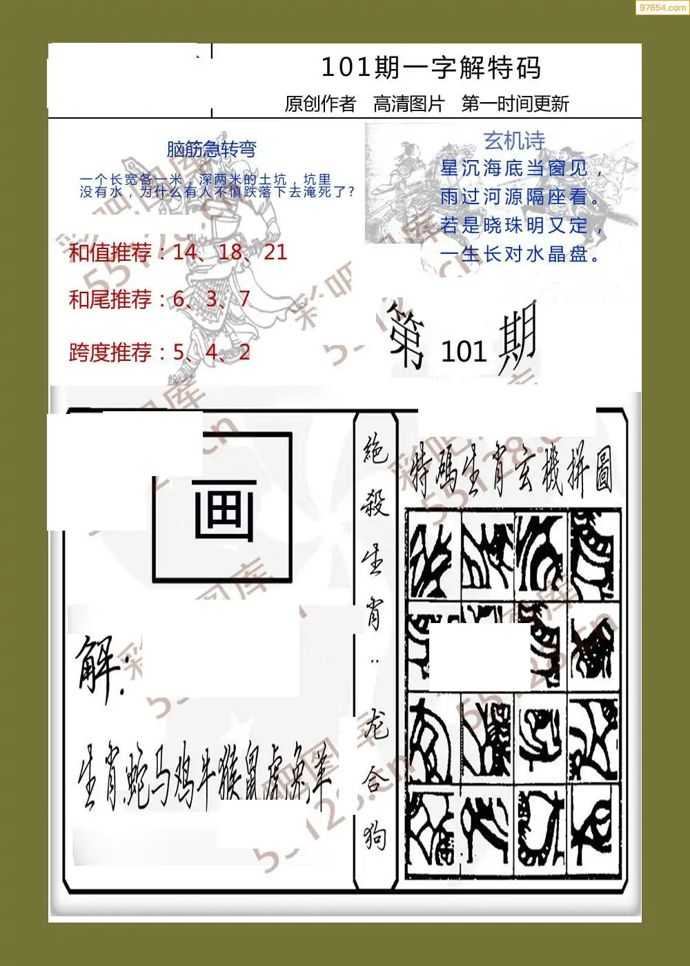 101期福彩天机壁怪字图