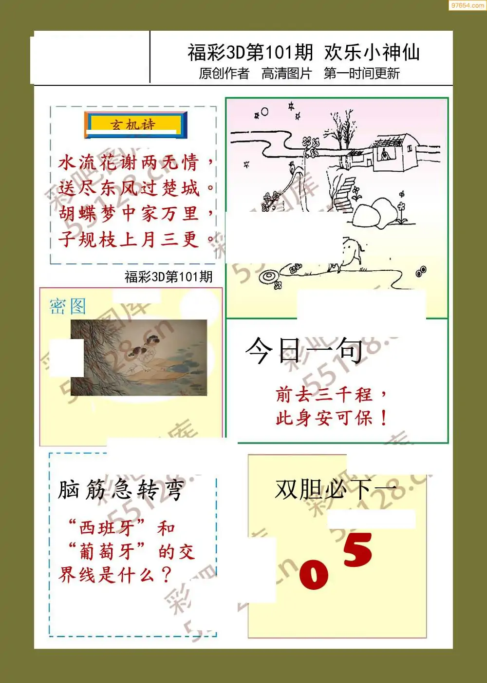 福彩3D26101期蓝仙子一句定三码图谜