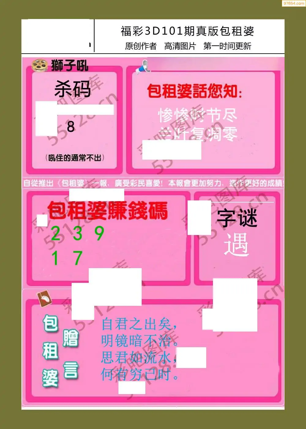 101期鑫马分析+杀手报3d图谜