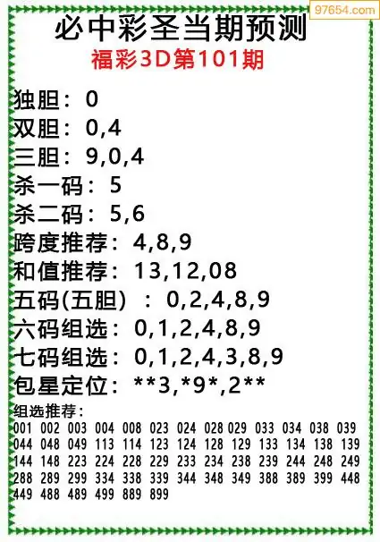 101期97654本站收集胆码出号预测