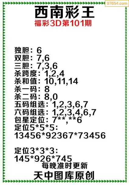 101期原创资料西南彩王当期预测