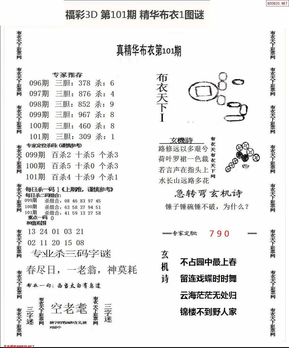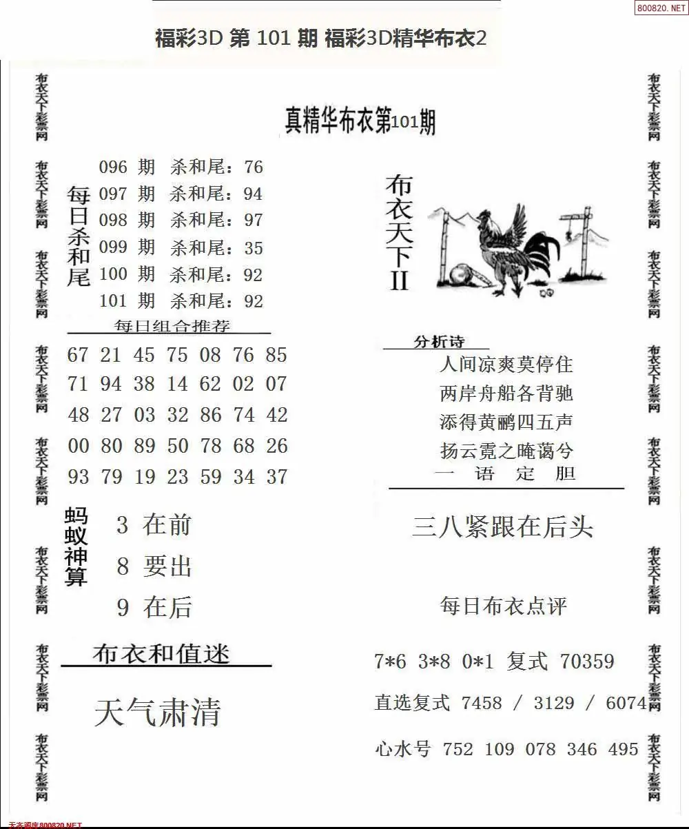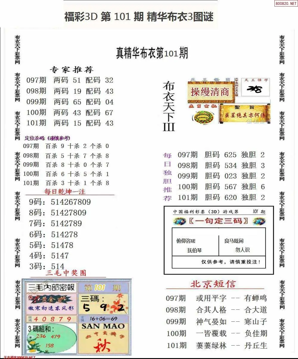 福彩101期3d真精华布衣+布衣早报(转载)