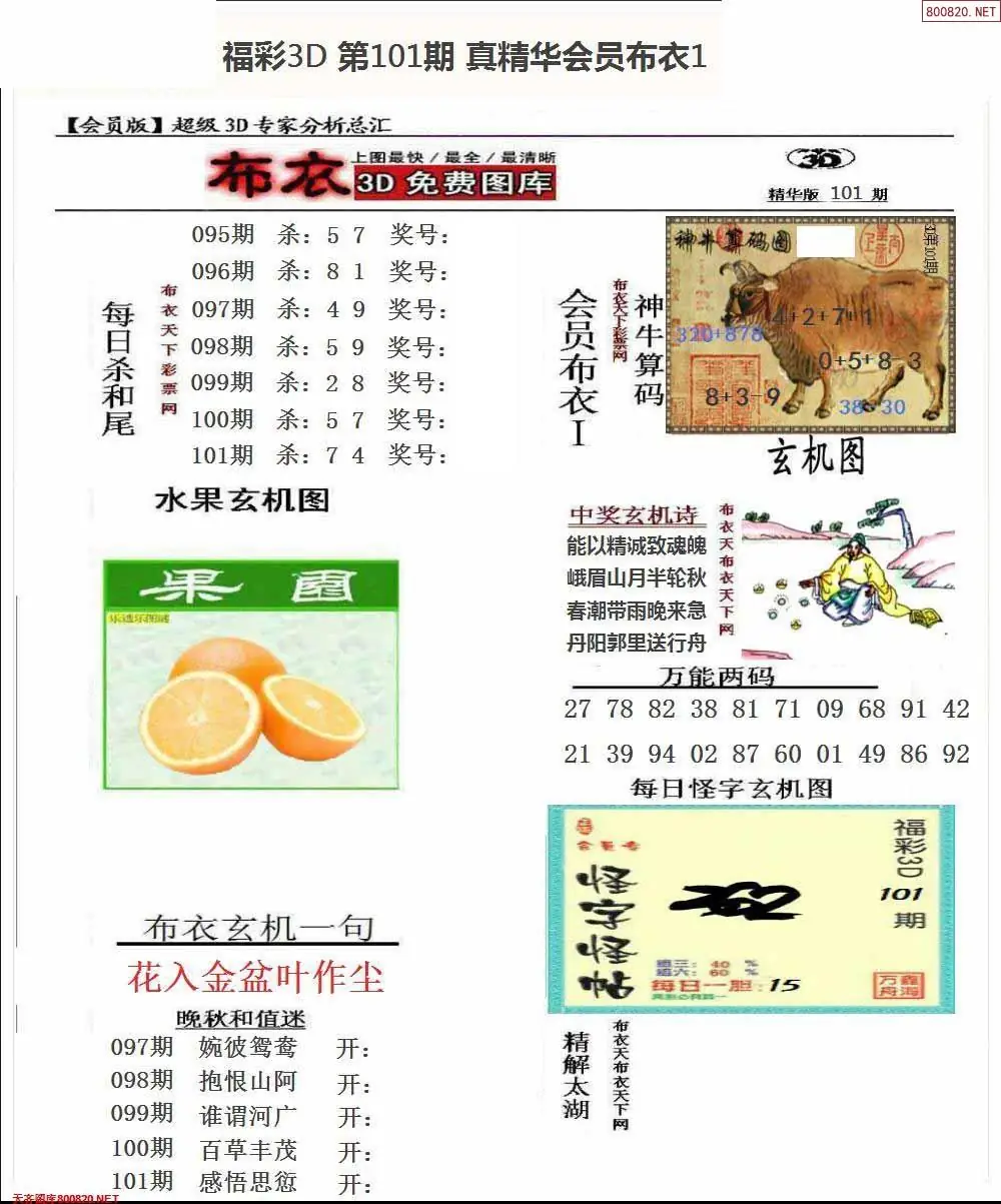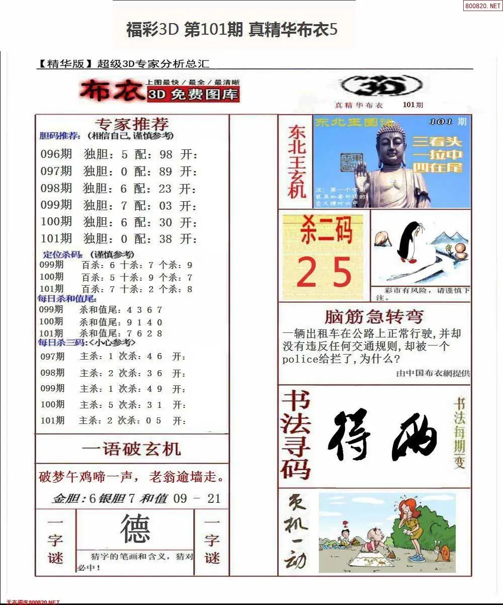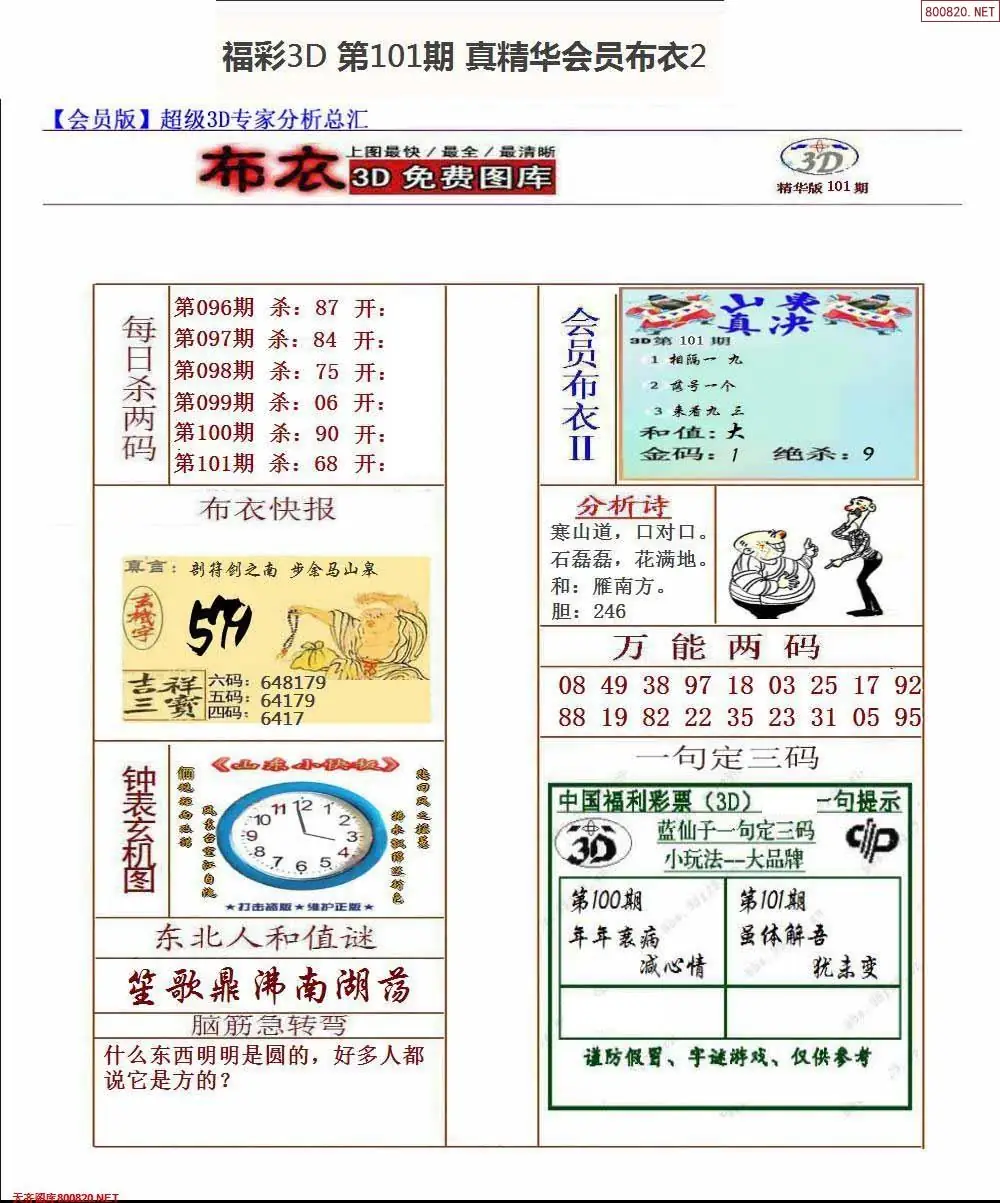 福彩101期3d真精华布衣+布衣早报(转载)