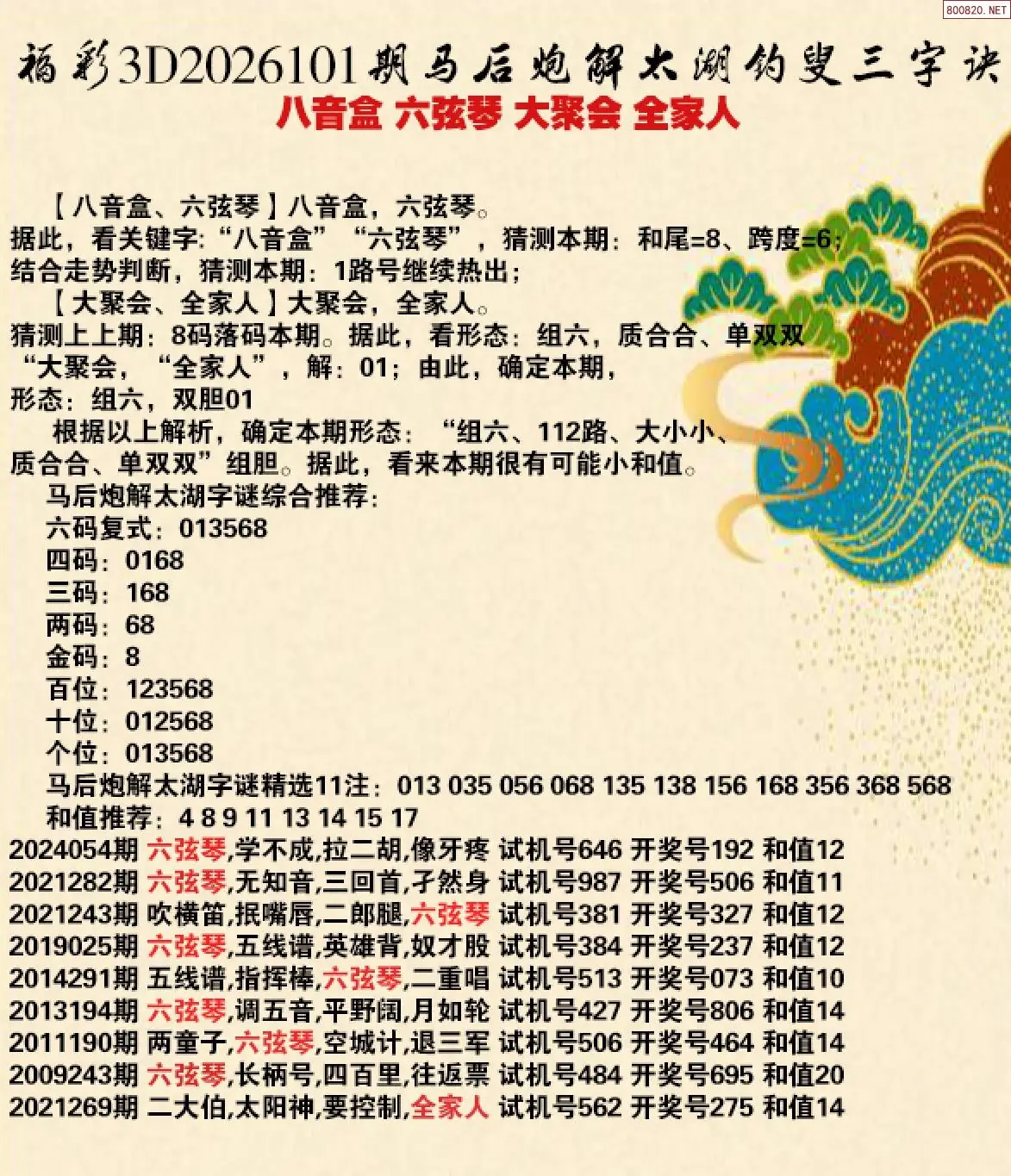 26年101期马后炮解3d太湖钓叟之 八音盒
