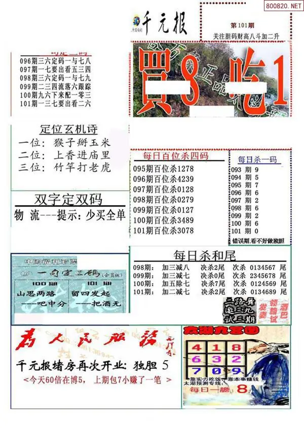 (8)26年101期今日3d各类彩报汇总