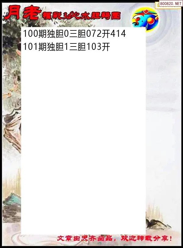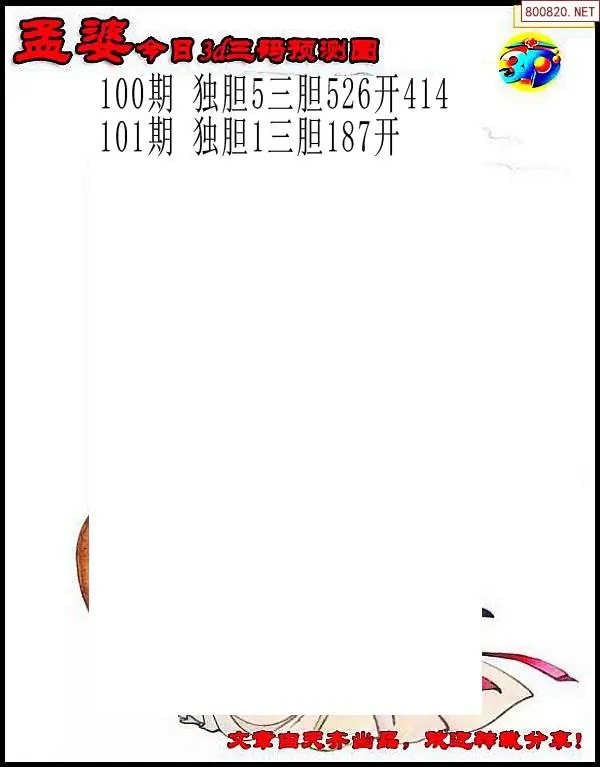 2026101期彩彩网3d原创图迷搜集(天中整理)