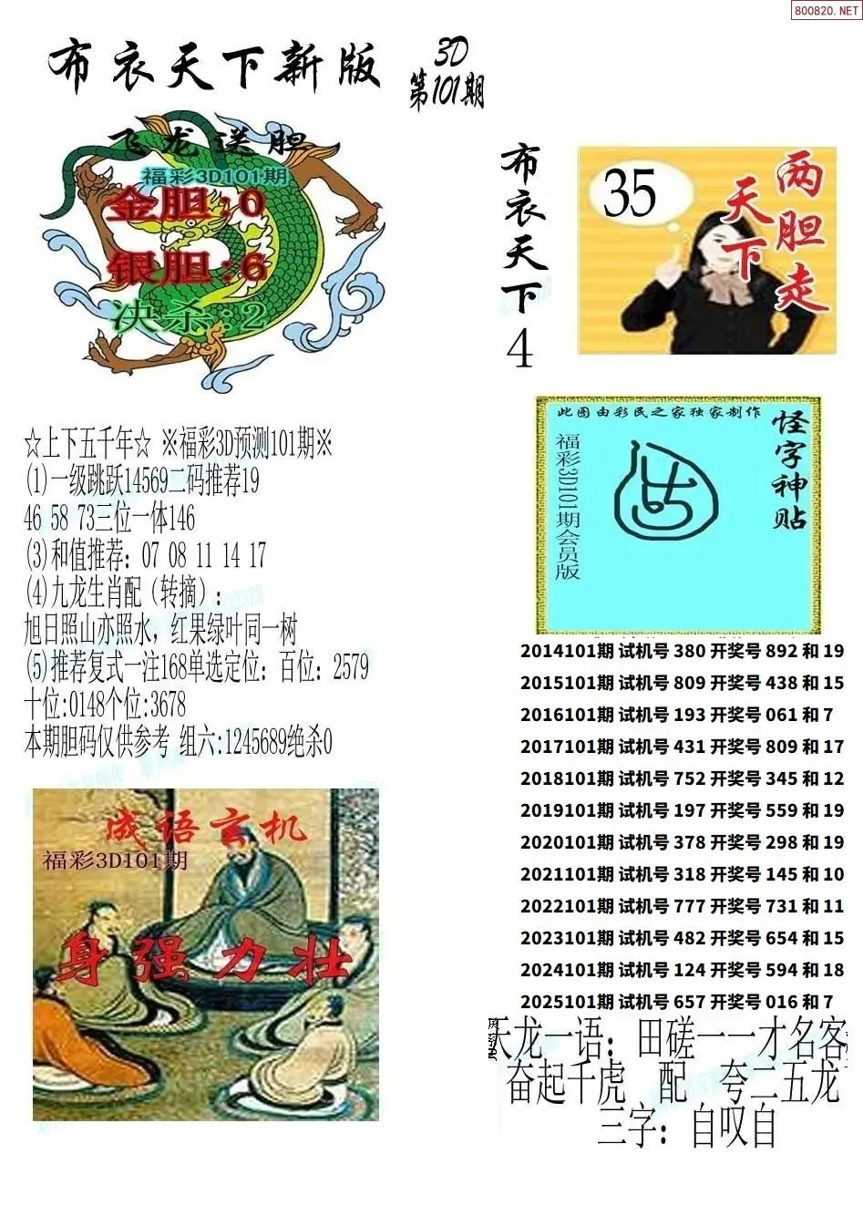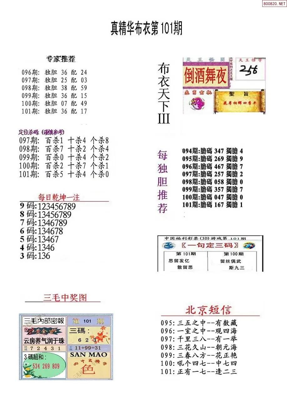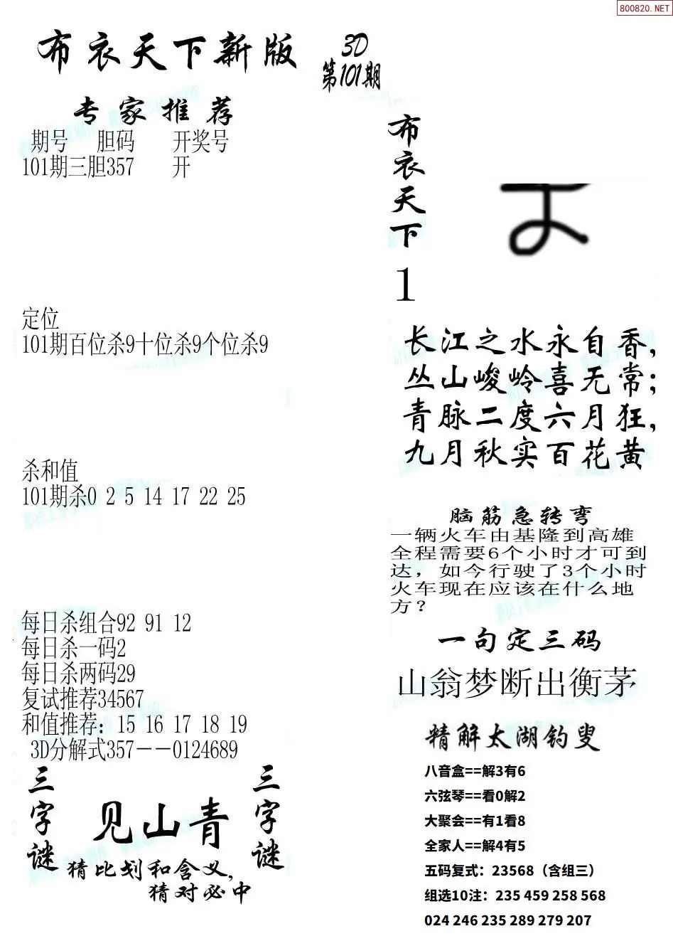 (2)26年101期本期3d图迷汇总_福彩3D图谜总汇图