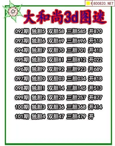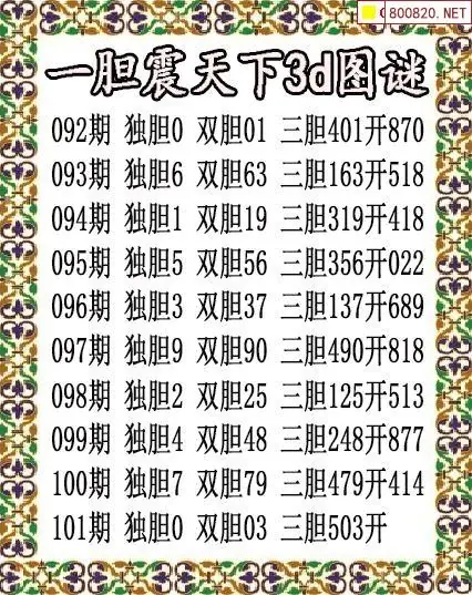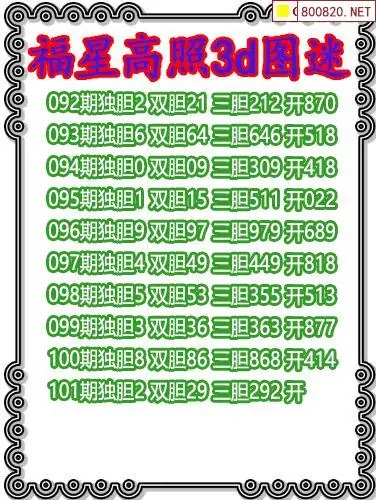 (3)2026100期3D预测总汇全图_福彩3d图谜字谜总汇