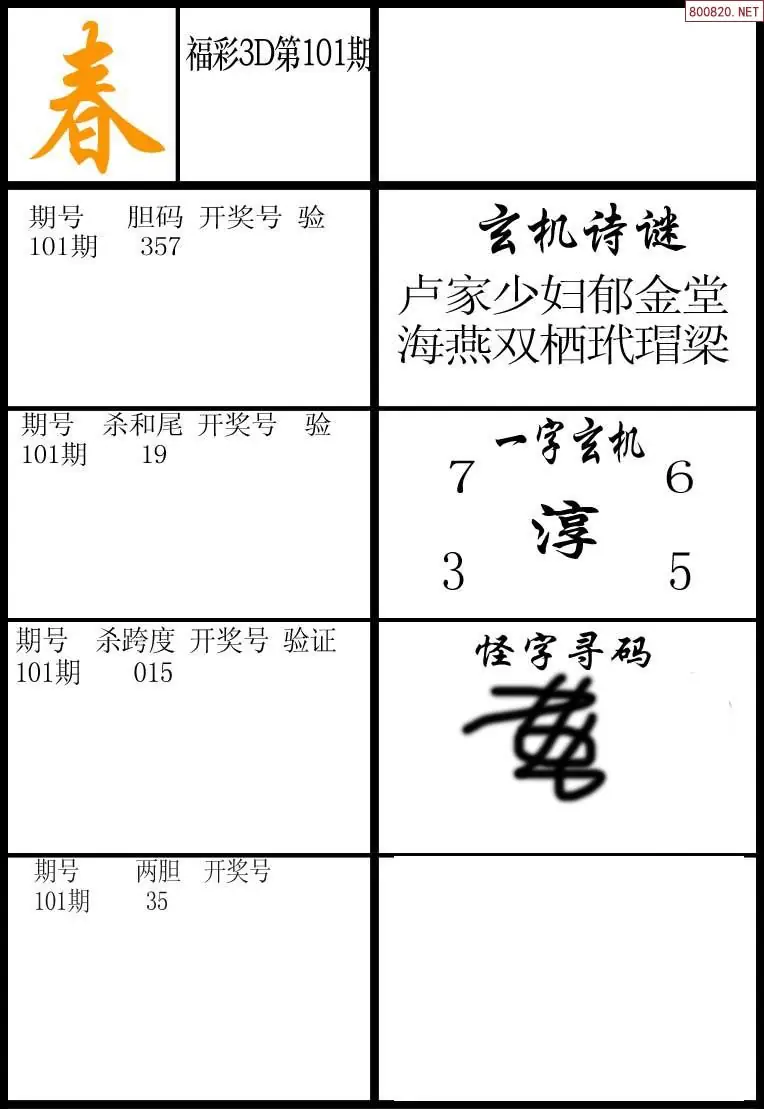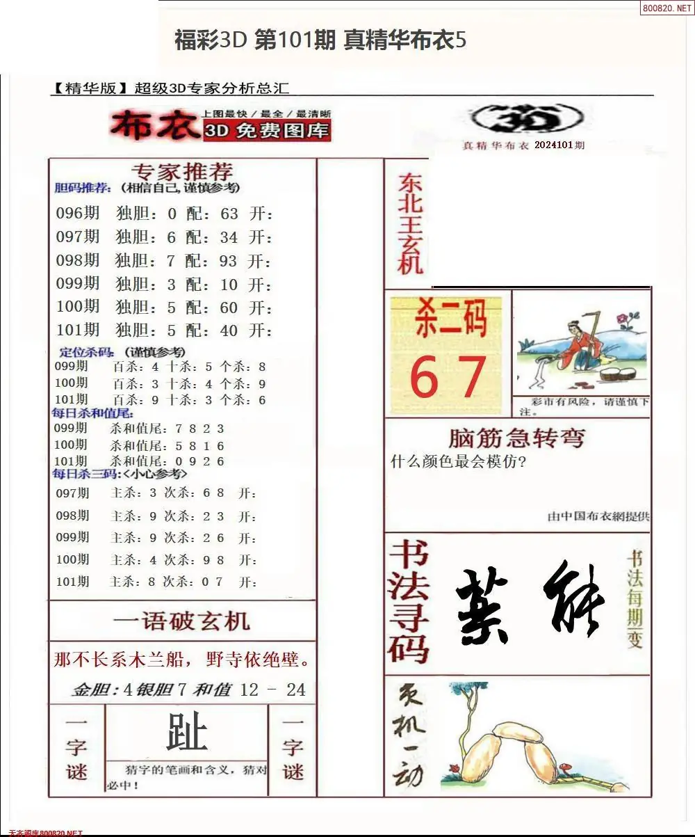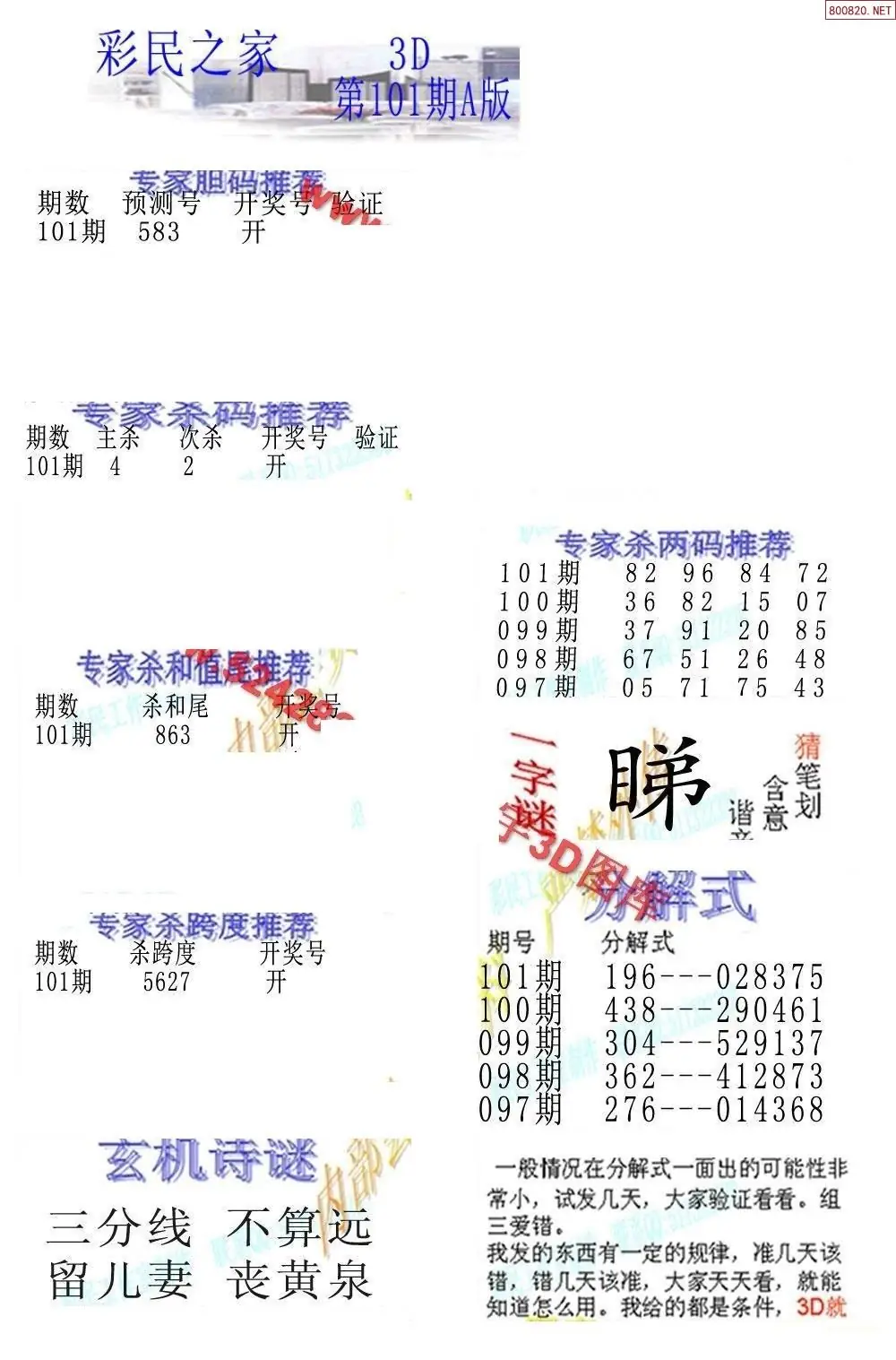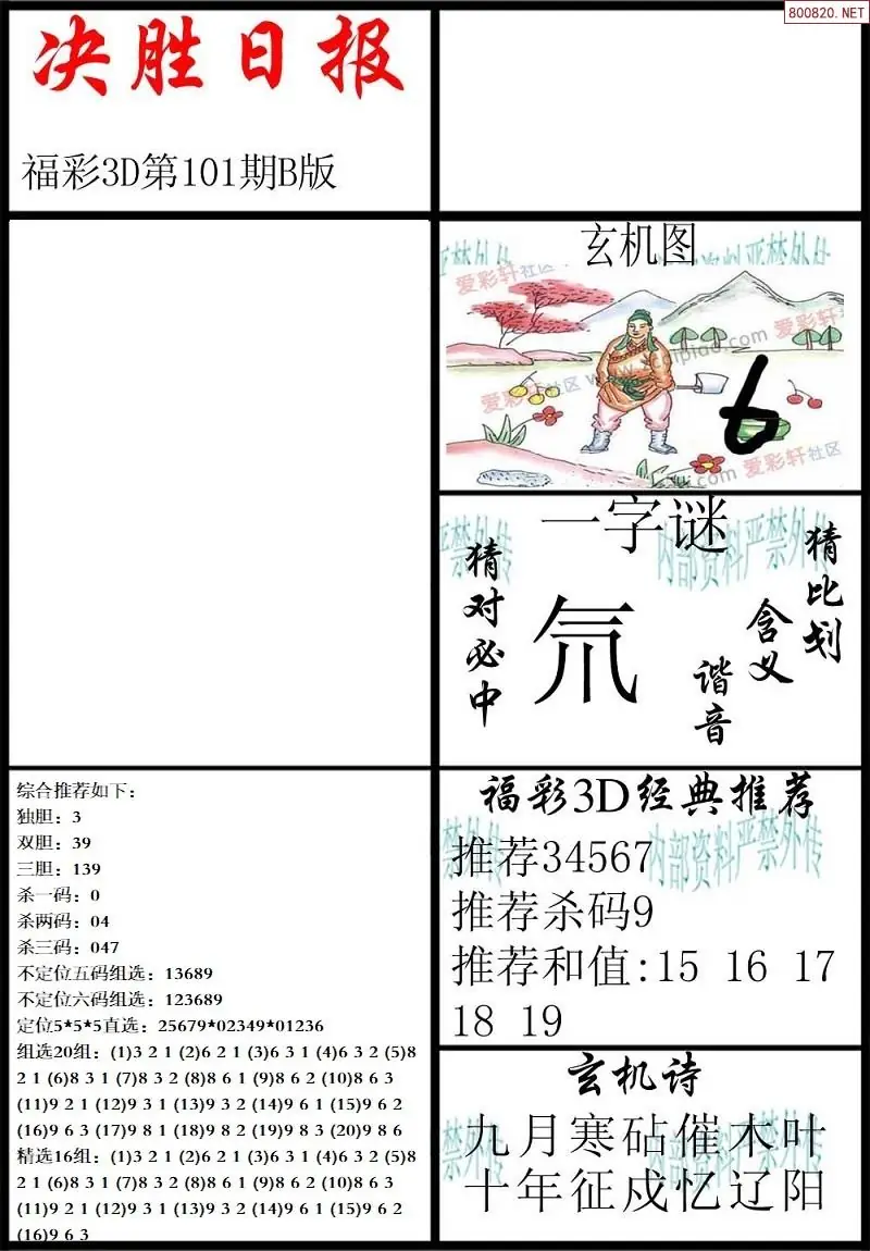 (3)2026101期3D预测总汇全图_福彩3d图谜字谜总汇