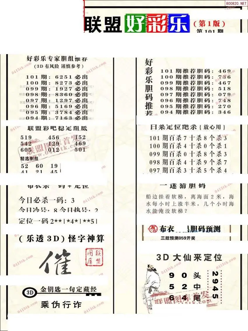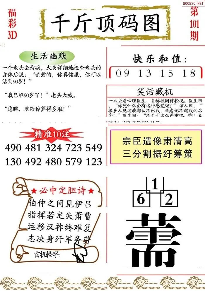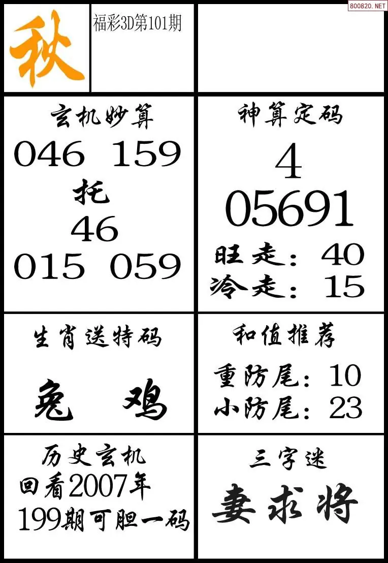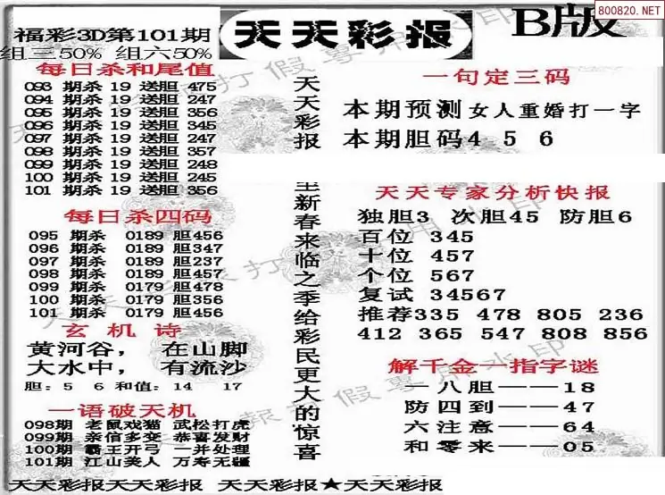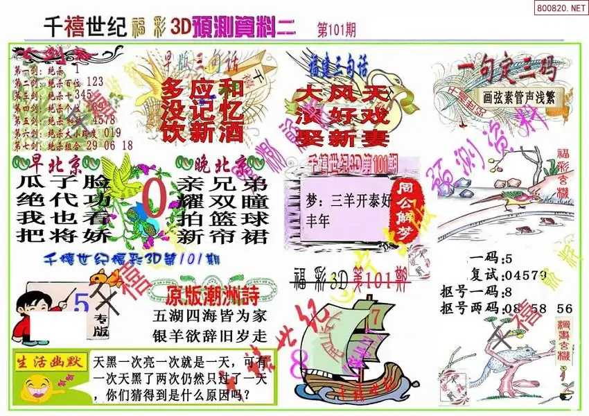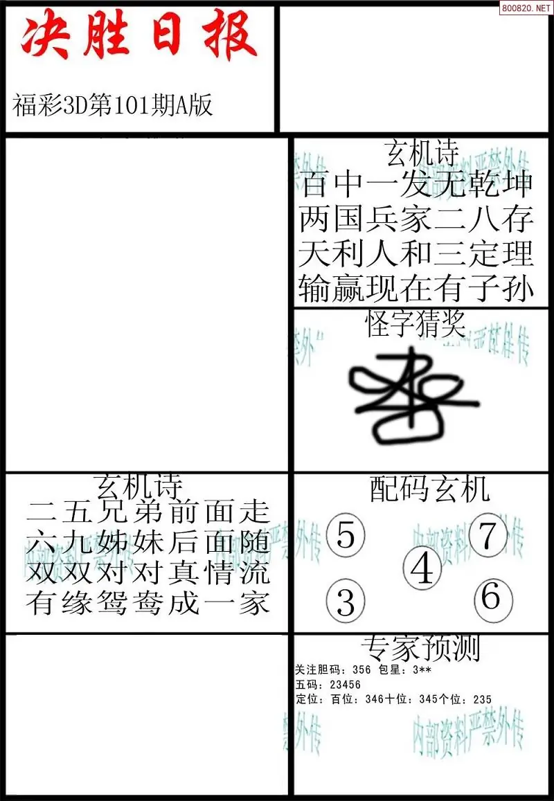 (3)2026101期3D预测总汇全图_福彩3d图谜字谜总汇