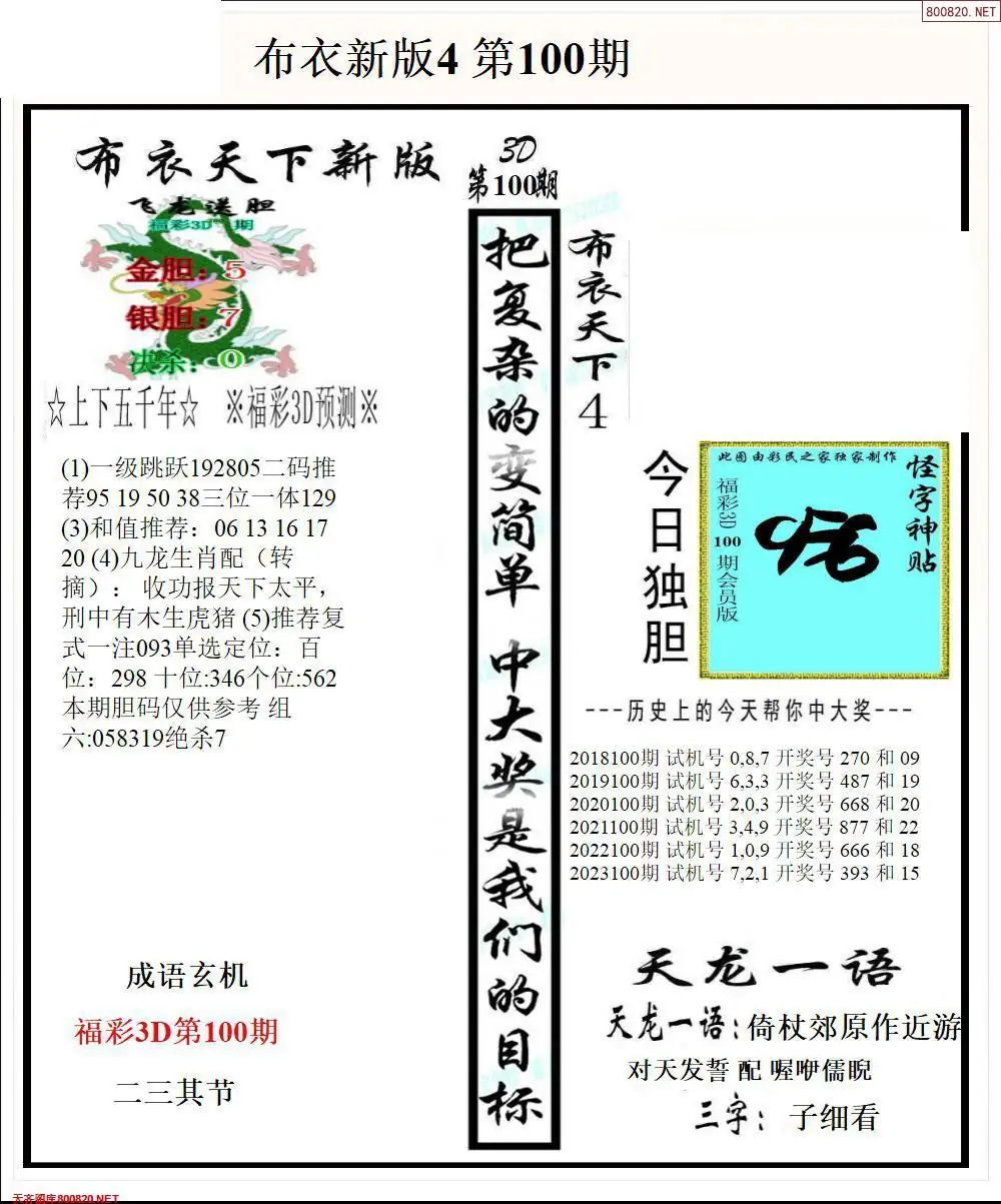 (2)26年100期本期3d图迷汇总_福彩3D图谜总汇图