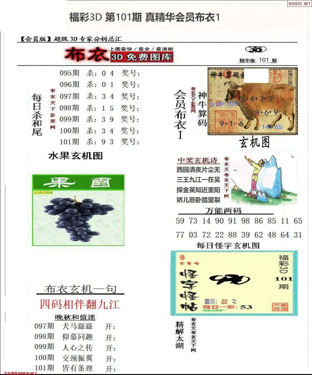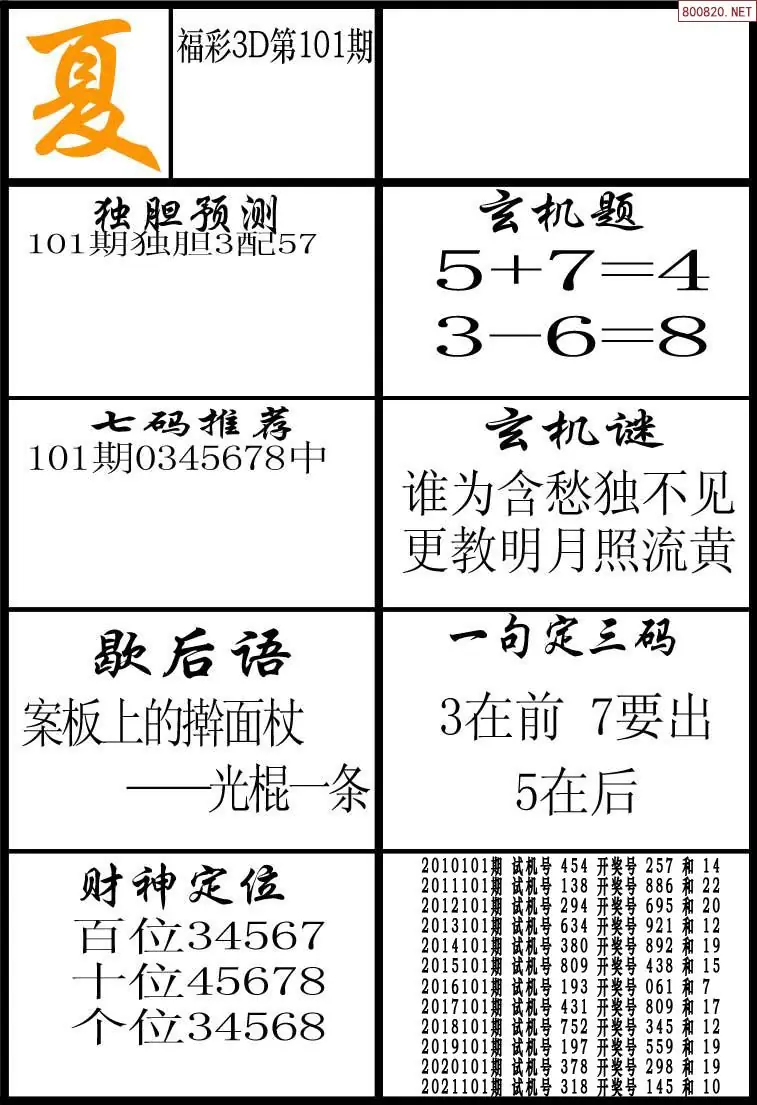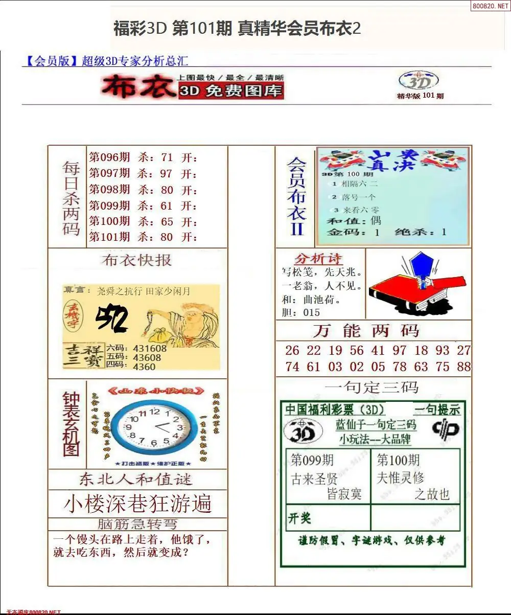 (2)26年101期本期3d图迷汇总_福彩3D图谜总汇图