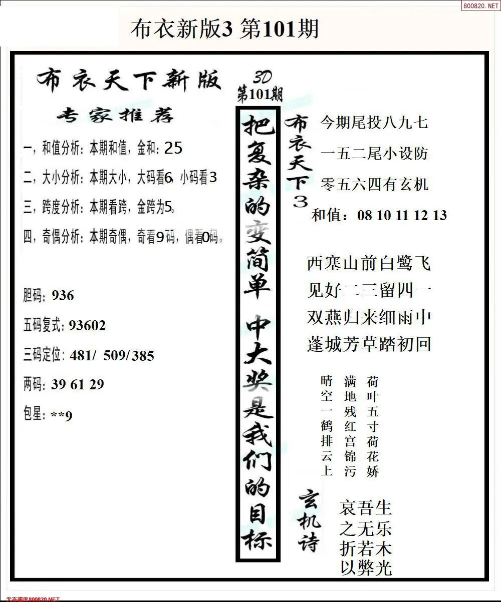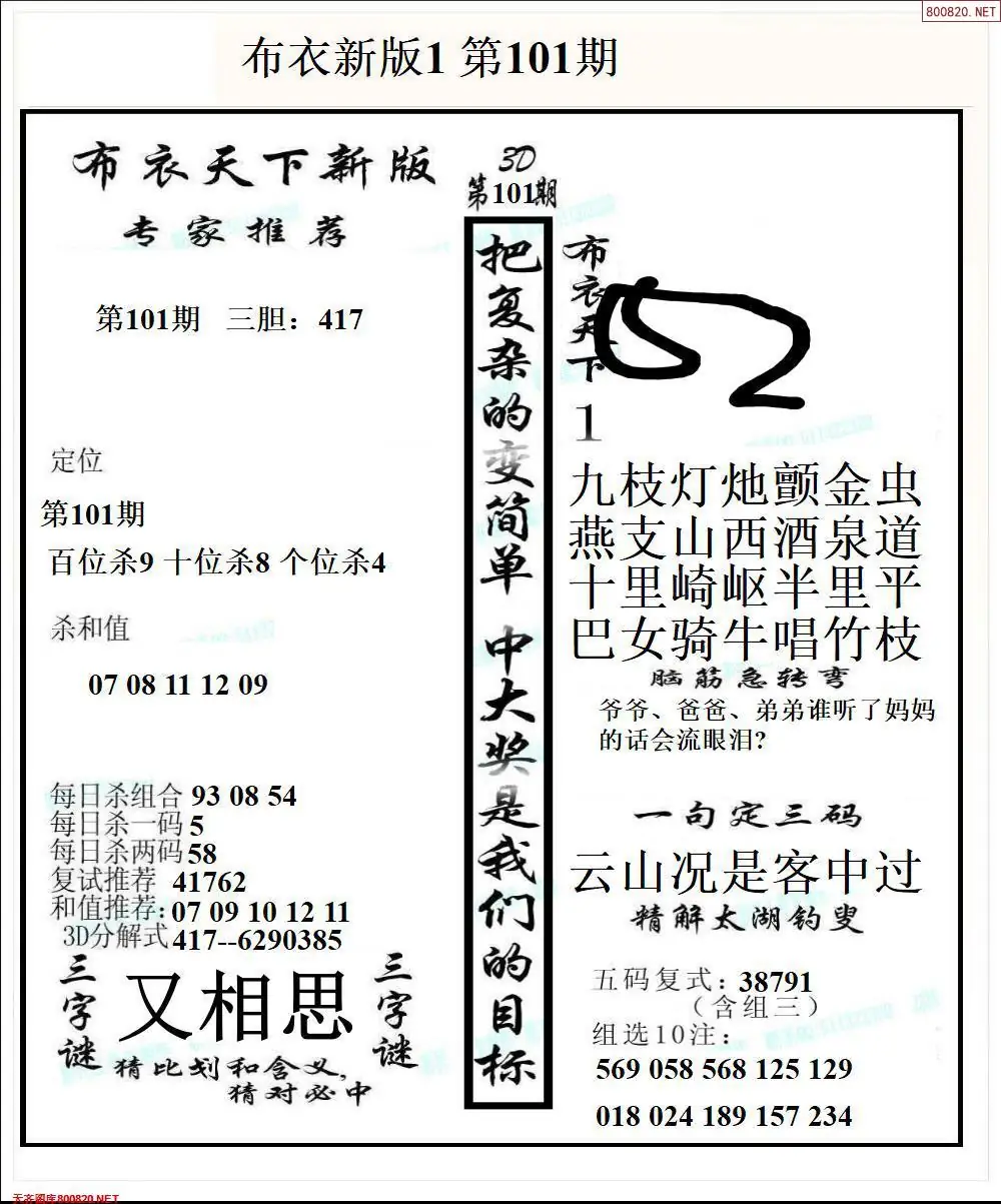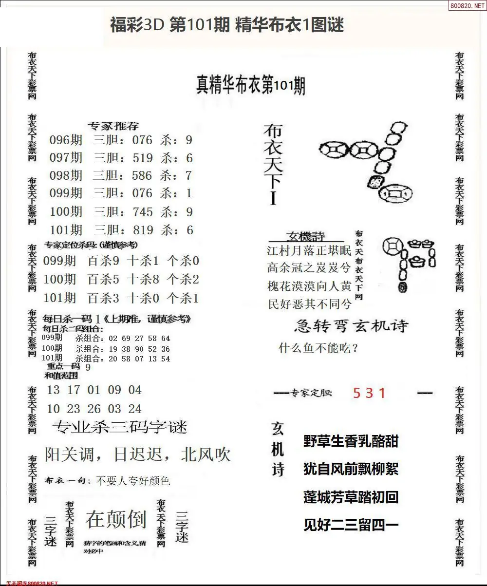 (2)26年101期本期3d图迷汇总_福彩3D图谜总汇图