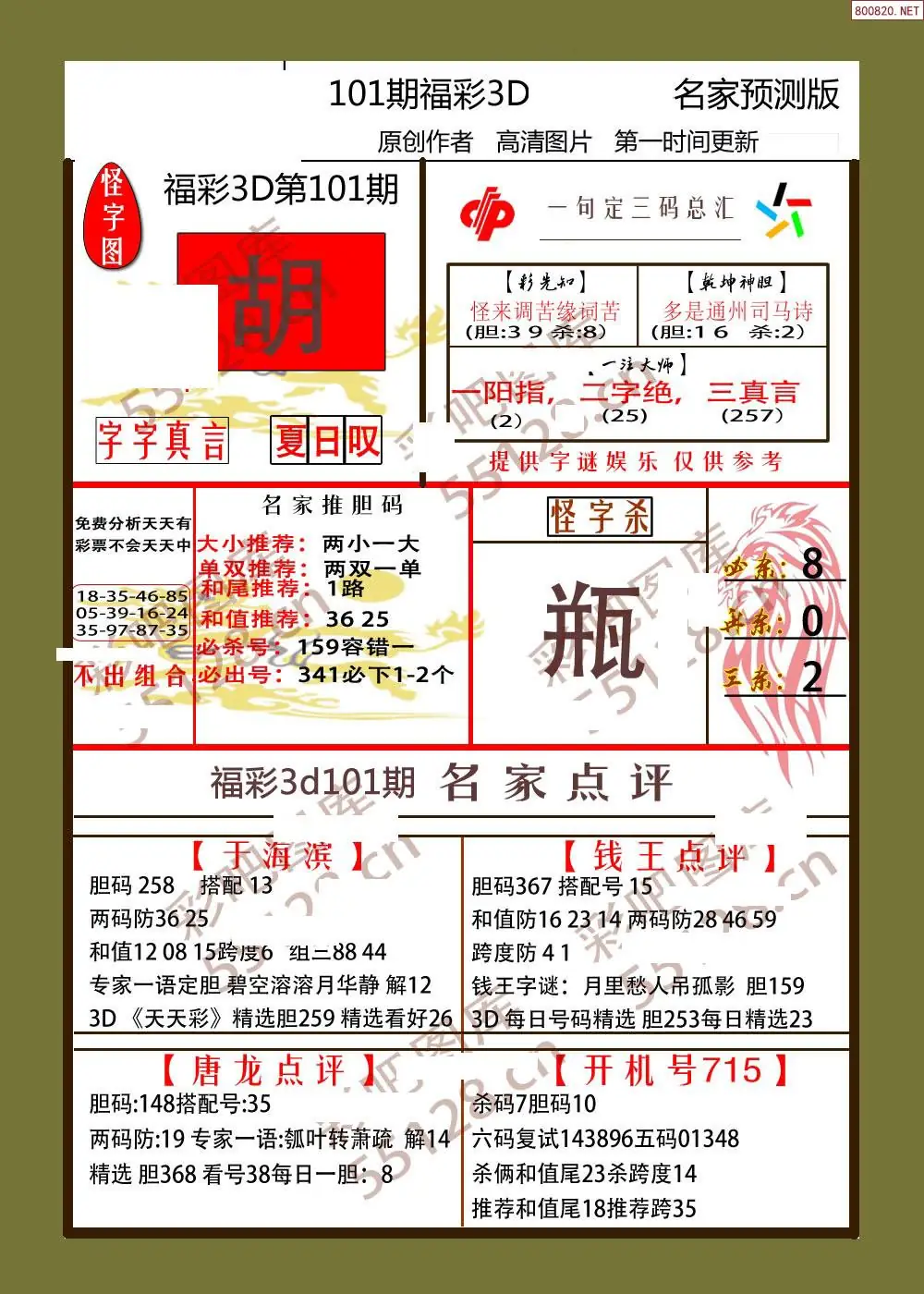 (3)2026101期3D预测总汇全图_福彩3d图谜字谜总汇