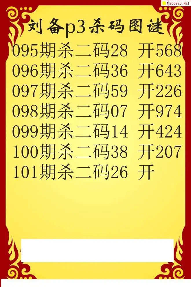 26年101期刘备p3杀码图谜