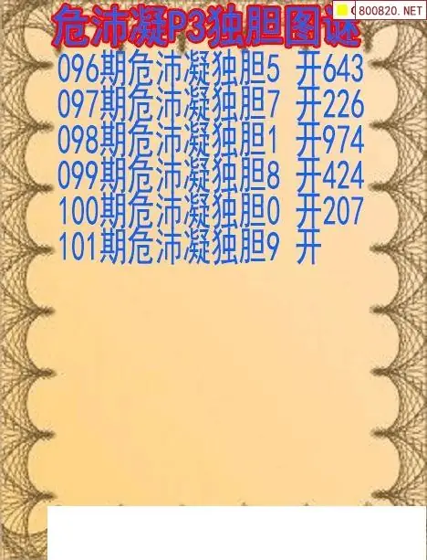 26101期危沛凝排列三独胆图谜