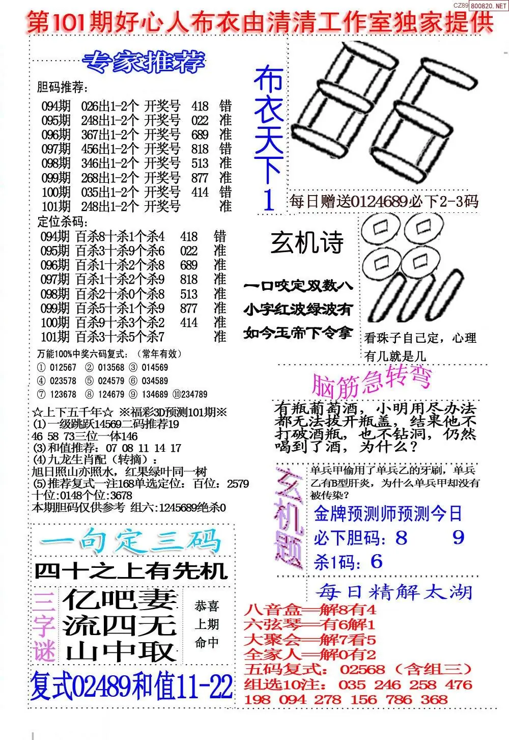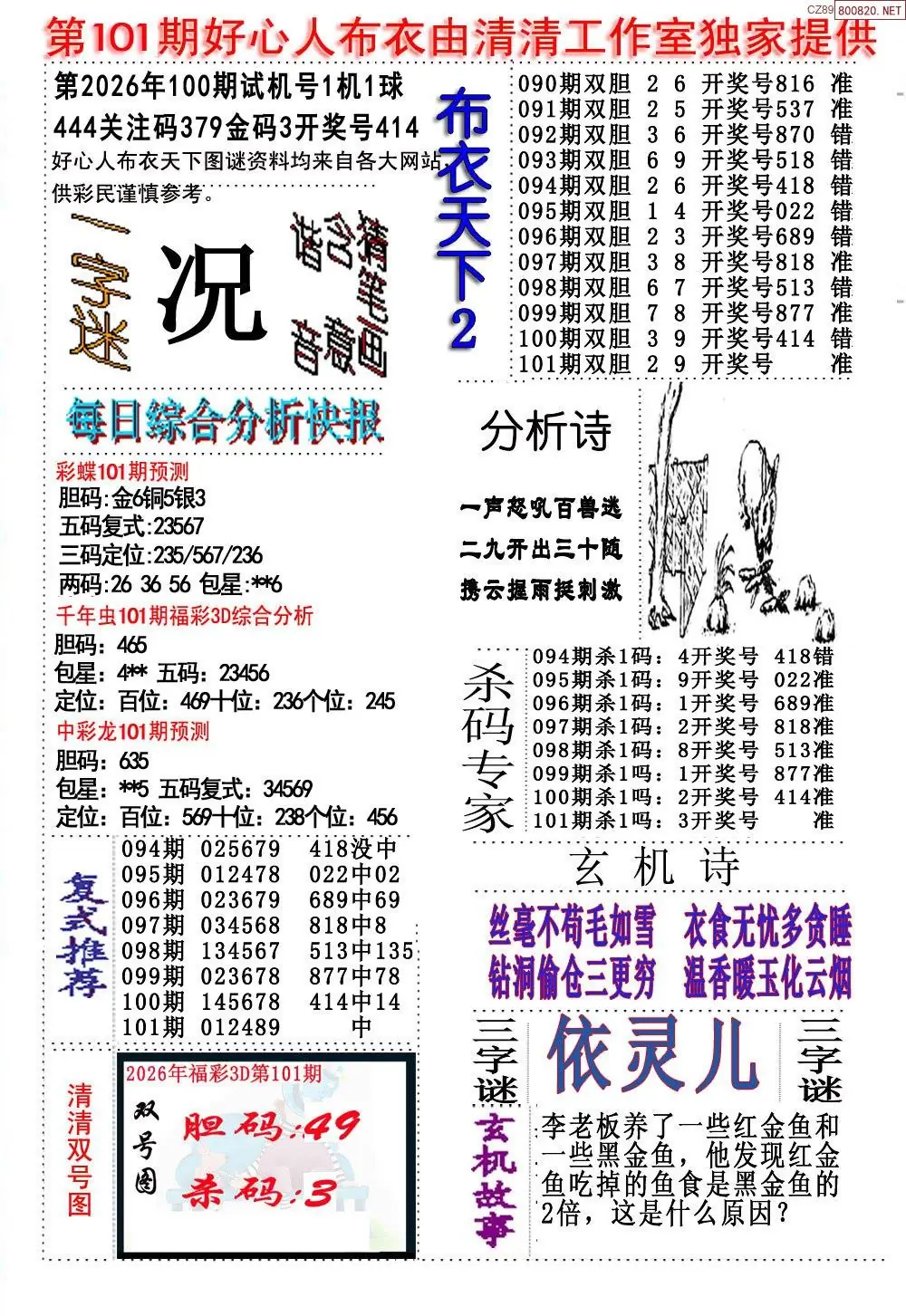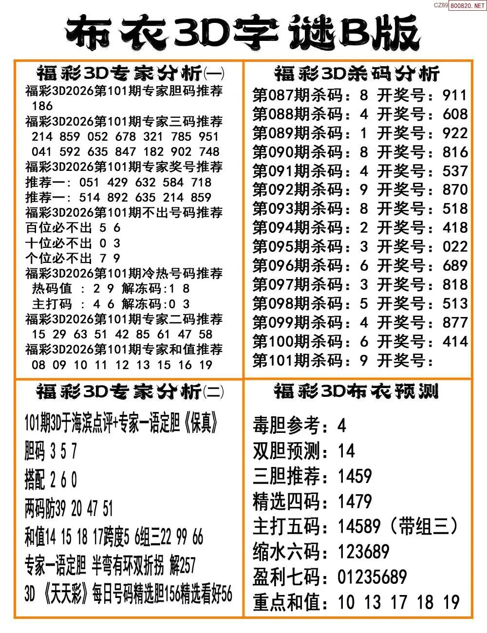 (2)26年101期本期3d图迷汇总_福彩3D图谜总汇图