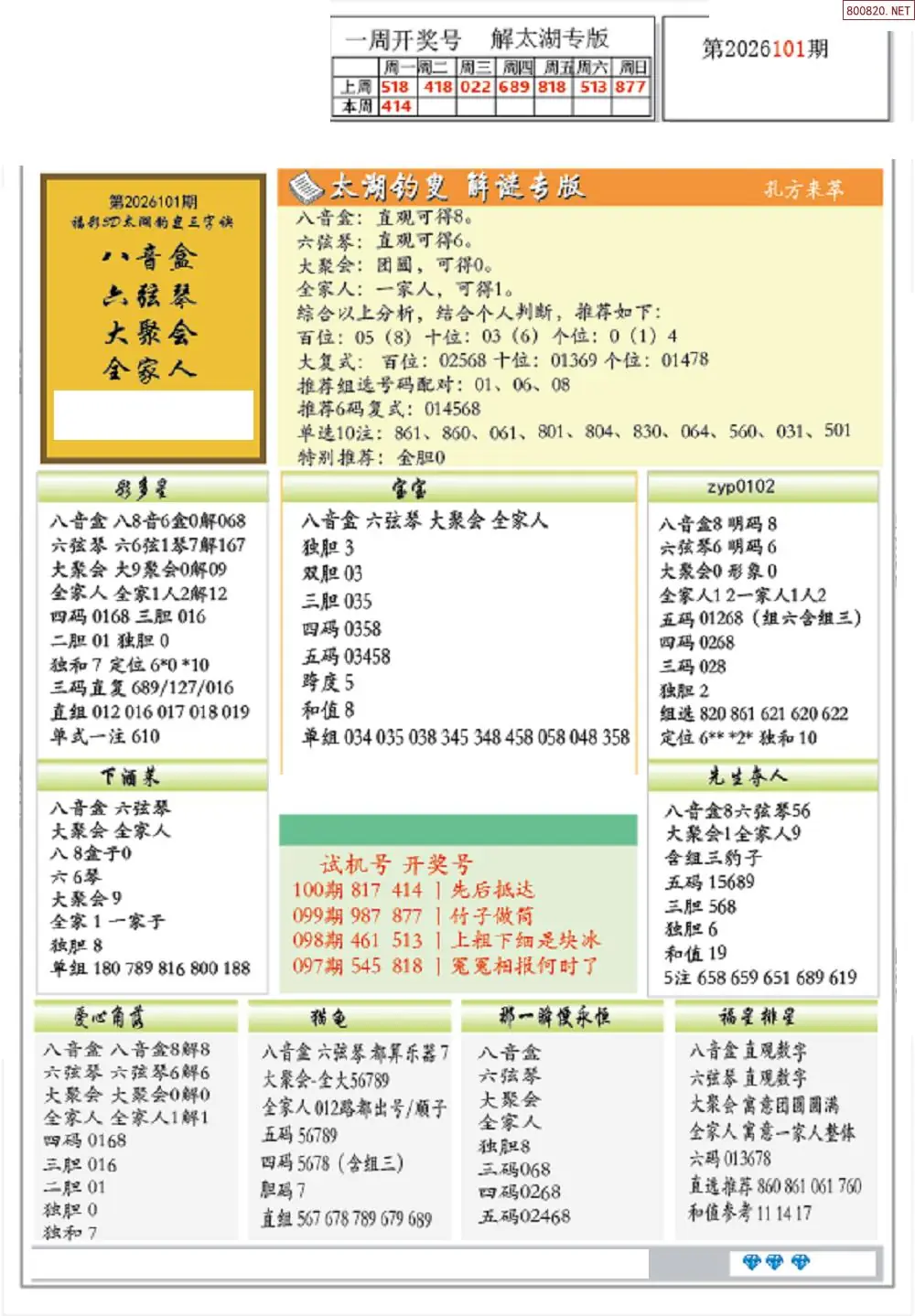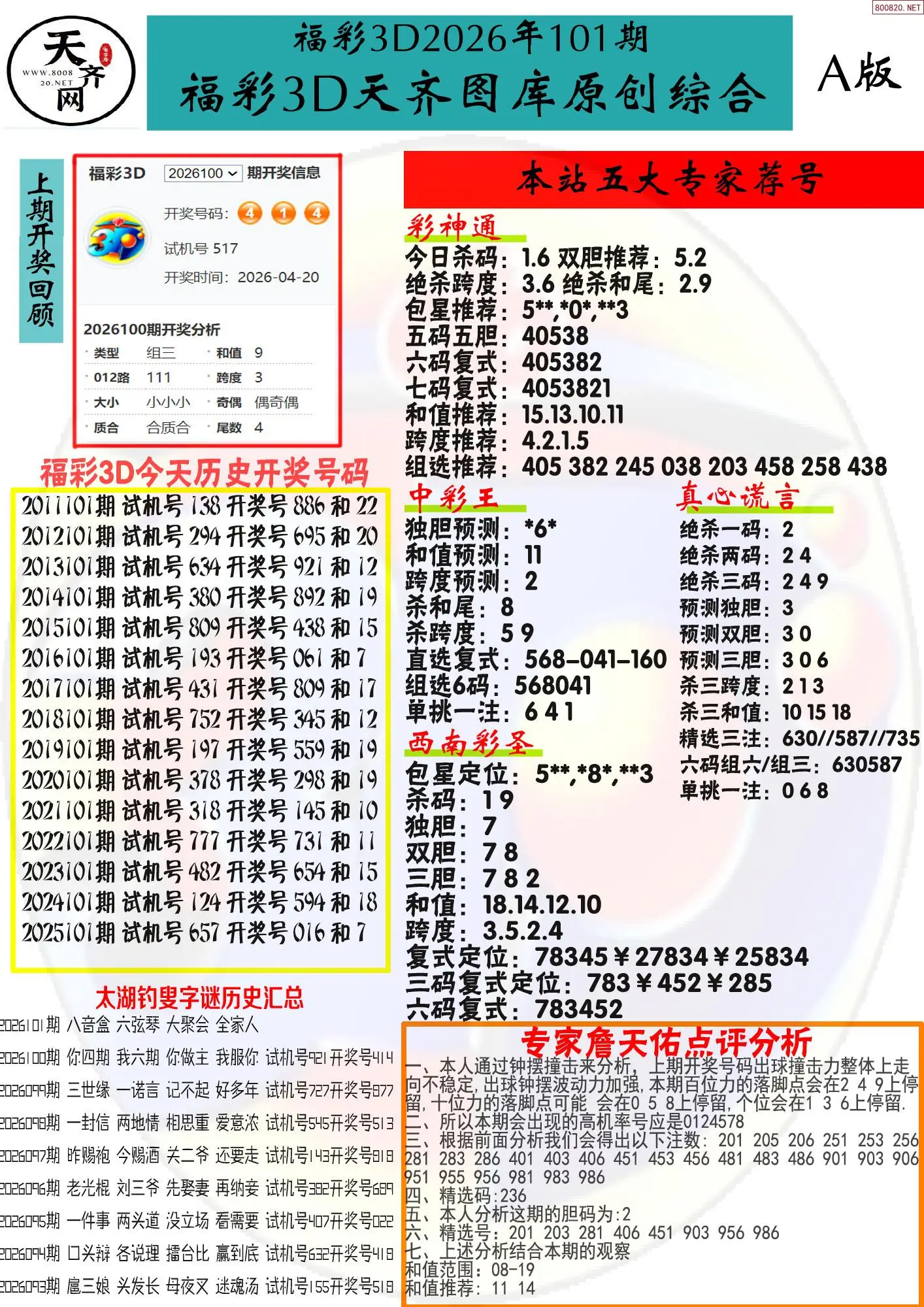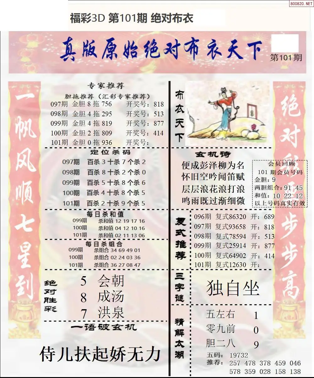 (2)26年101期本期3d图迷汇总_福彩3D图谜总汇图