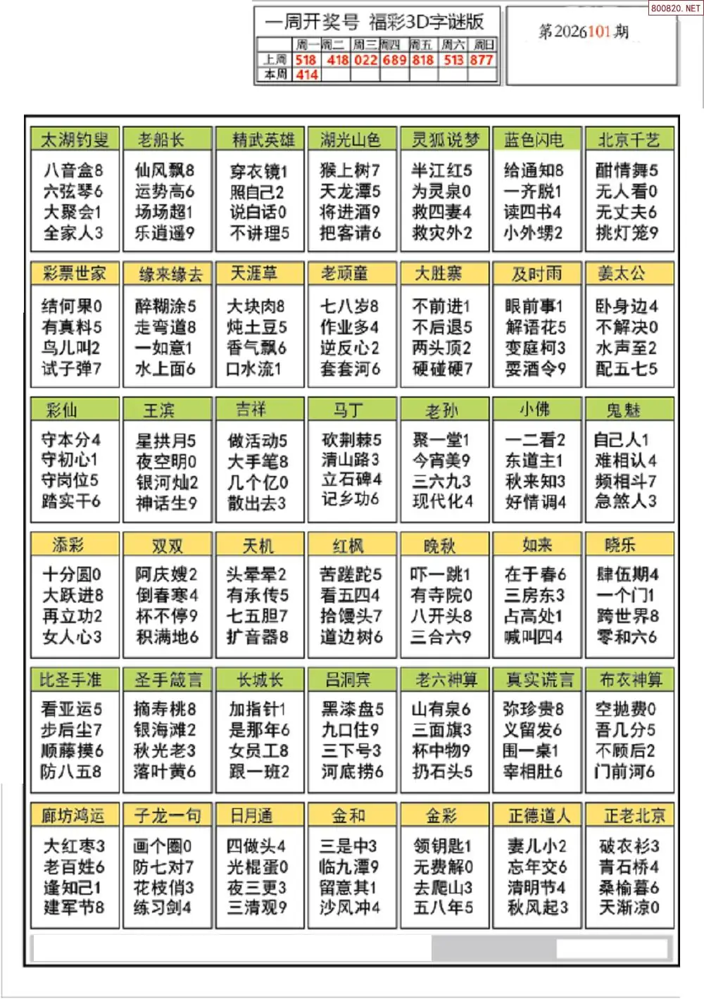 (3)2026101期3D预测总汇全图_福彩3d图谜字谜总汇