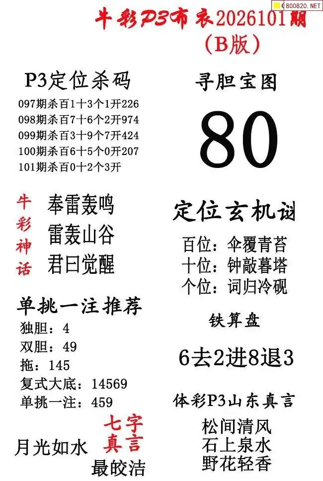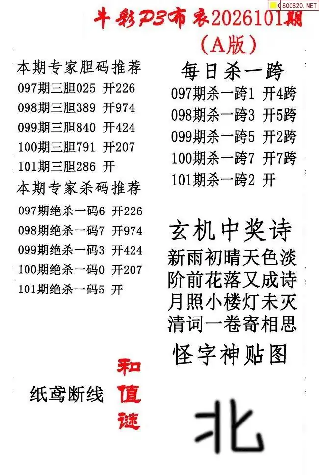 2026年101期北盟天机图+p3仙机图谜 _排三图谜专区