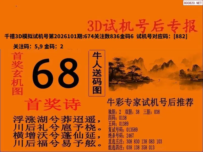 26101期福彩3D试机号后首奖诗