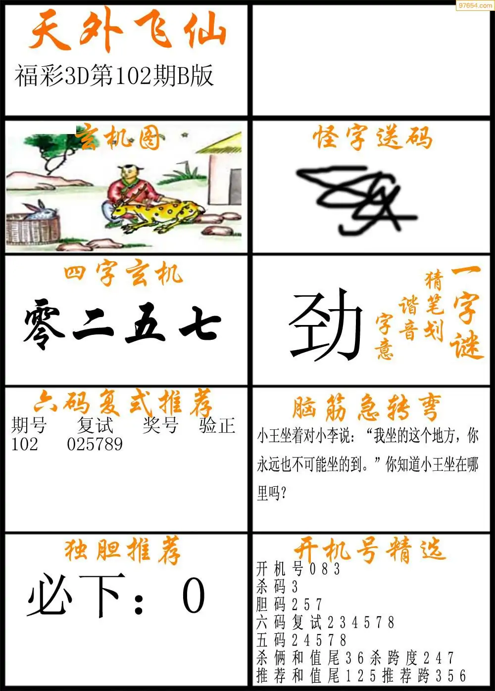 102期福彩3d天外飞仙B版