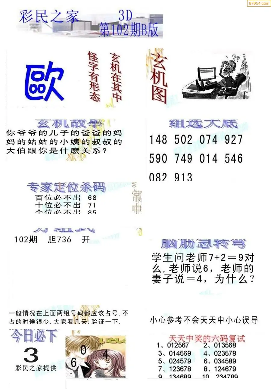 26102期3D彩民之家打印B版